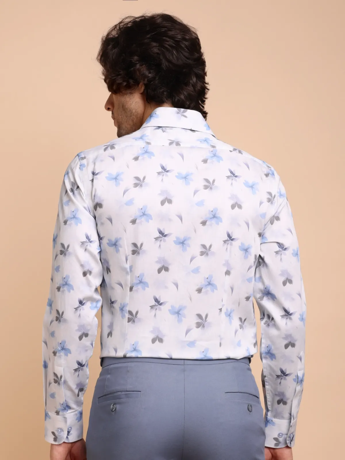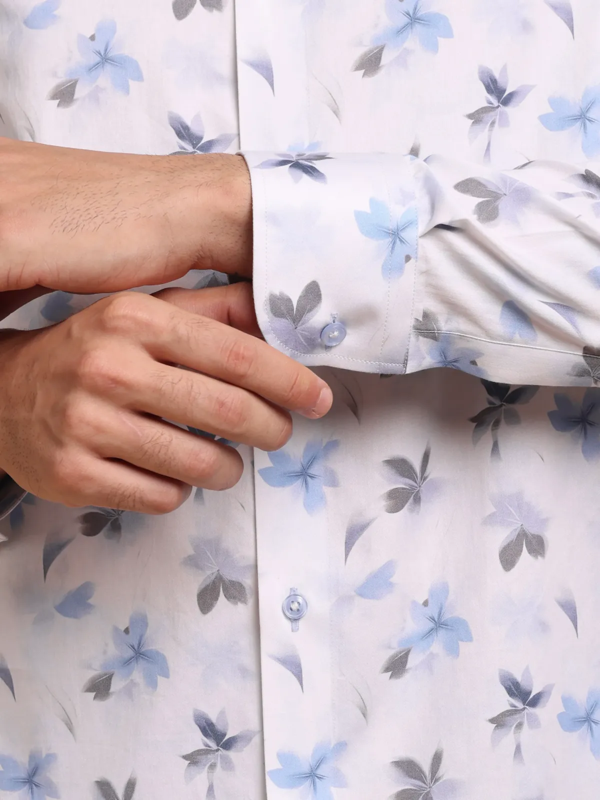Be the first to review “Blue and Grey Bloom in White Pure Cotton Shirt”
