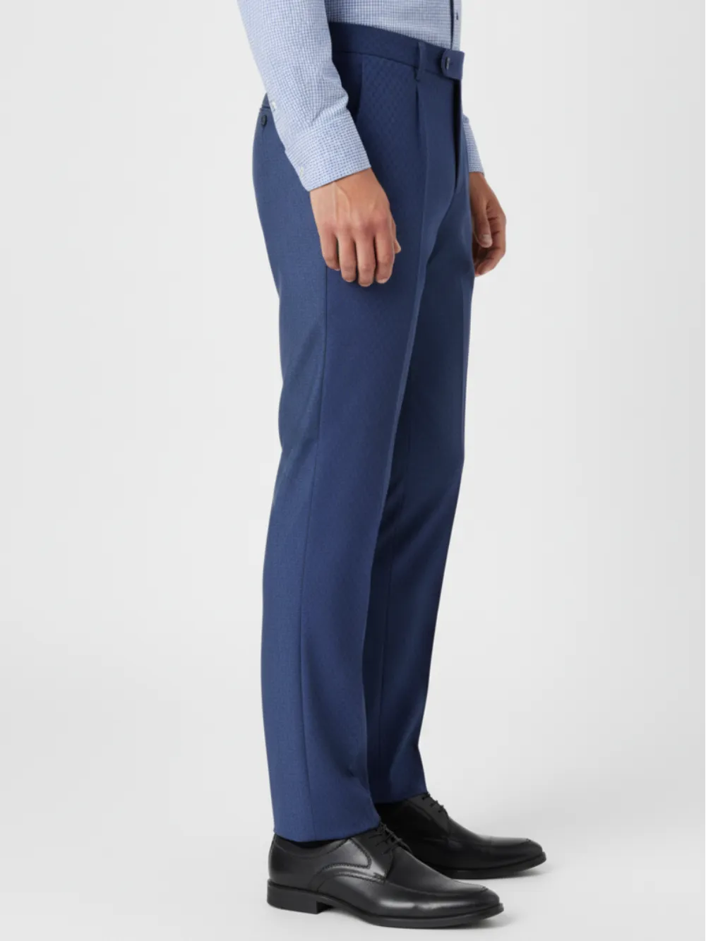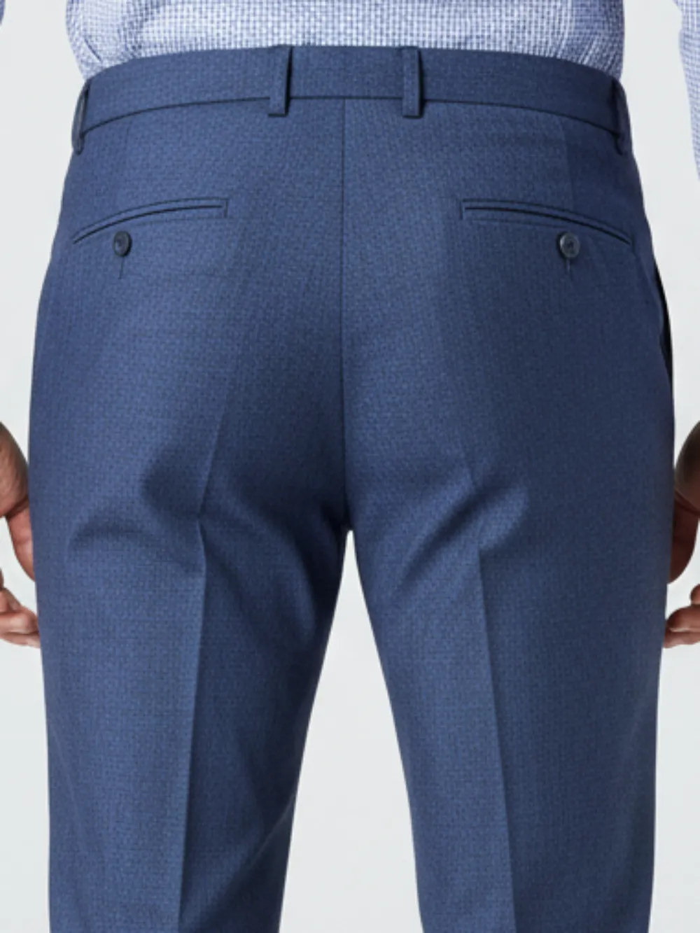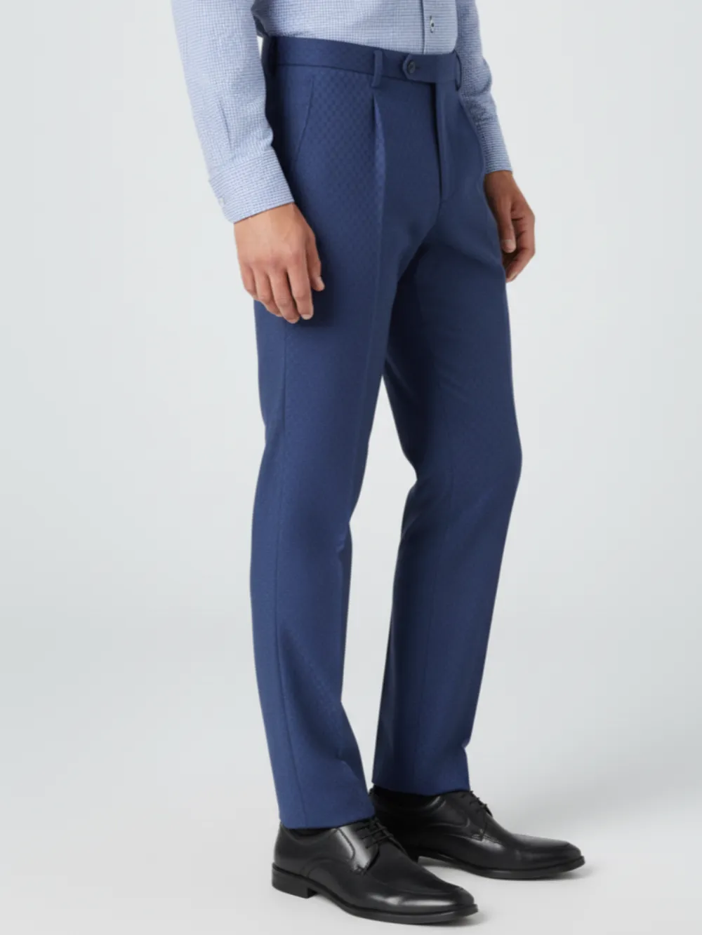 Elevate your everyday style with these refined blue textured formal trousers from Ritz The Label. Tailored for a sleek, modern fit, they feature a subtle checked weave that adds depth and character to your look. Crafted from premium fabric for all-day comfort and ease of movement, these trousers are ideal for both office wear and after-hours sophistication. Pair them with a crisp shirt or blazer to complete a polished, confident ensemble.