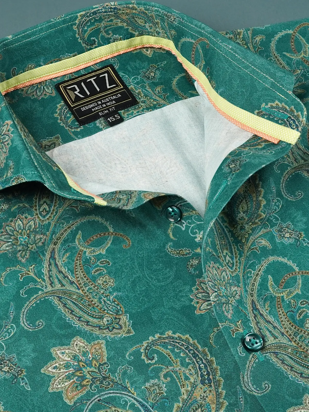 Wrap the measuring tape around the base of your neck where the shirt collar would sit. Place a finger between the tape and your neck for the easement required for comfort.
