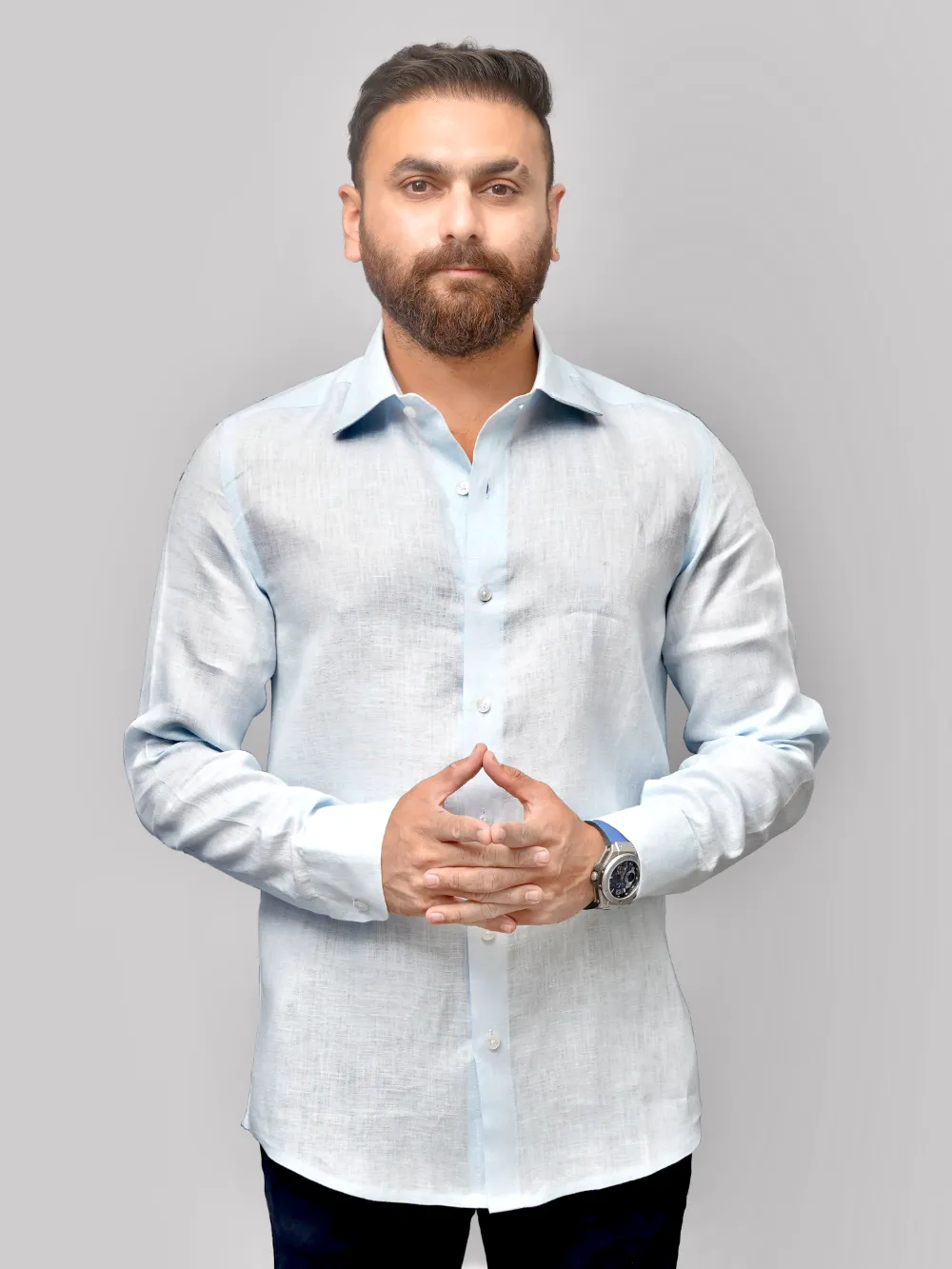 Place the begining of the measuring tape at the end of your shoulder and where your arm starts. Run the tape down the outside of your arm past your elbow. Stop measuring where you want the cuff of the shirt to sit.