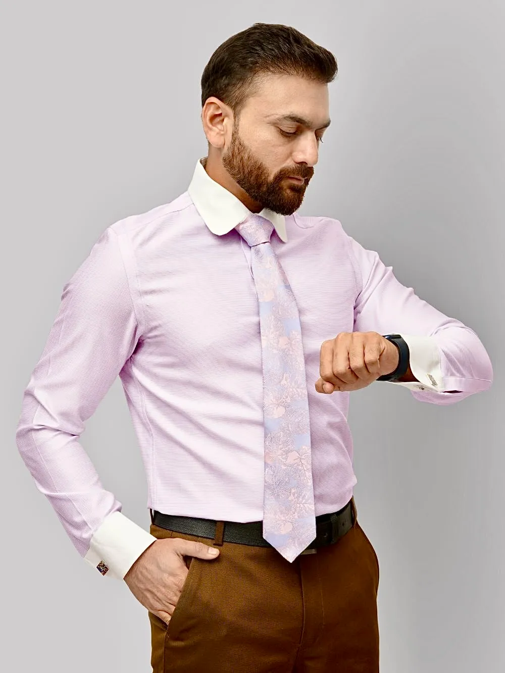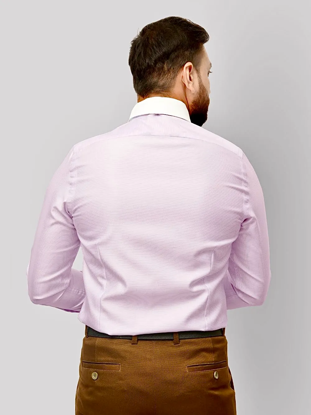 Wrap the measuring tape around the base of your neck where the shirt collar would sit. Place a finger between the tape and your neck for the easement required for comfort.