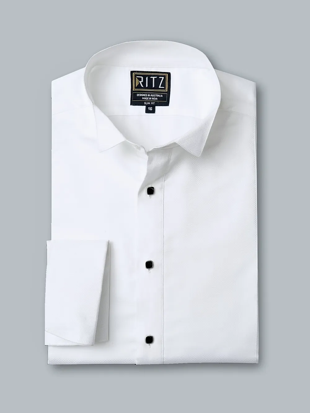 Wrap the measuring tape around the base of your neck where the shirt collar would sit. Place a finger between the tape and your neck for the easement required for comfort.