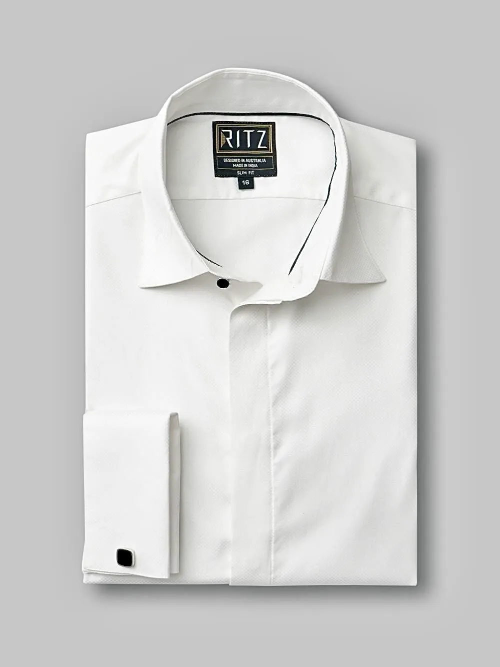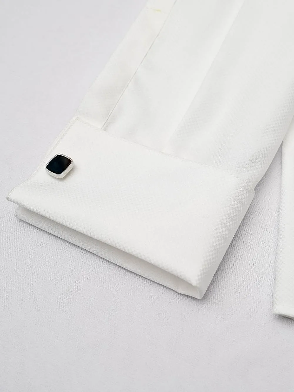 Indulge into ultimate luxury with our Jacquard weave 100% cotton evening shirt, showcasing sophisticated concealed front placket and metal collar button, making it a perfect choice of a true gentleman for that special evening.