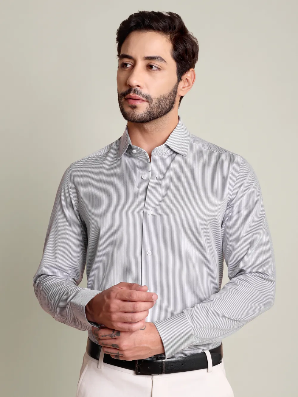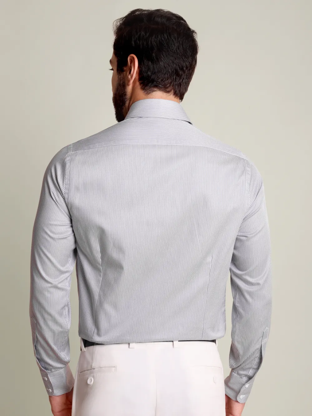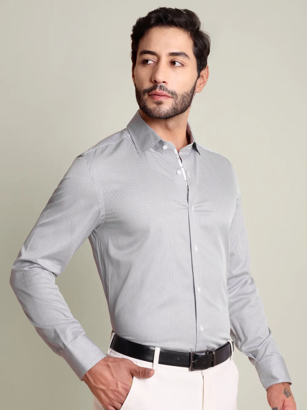 Non-Iron Pure Cotton Grey Stripped Shirt – Jacquard Weave