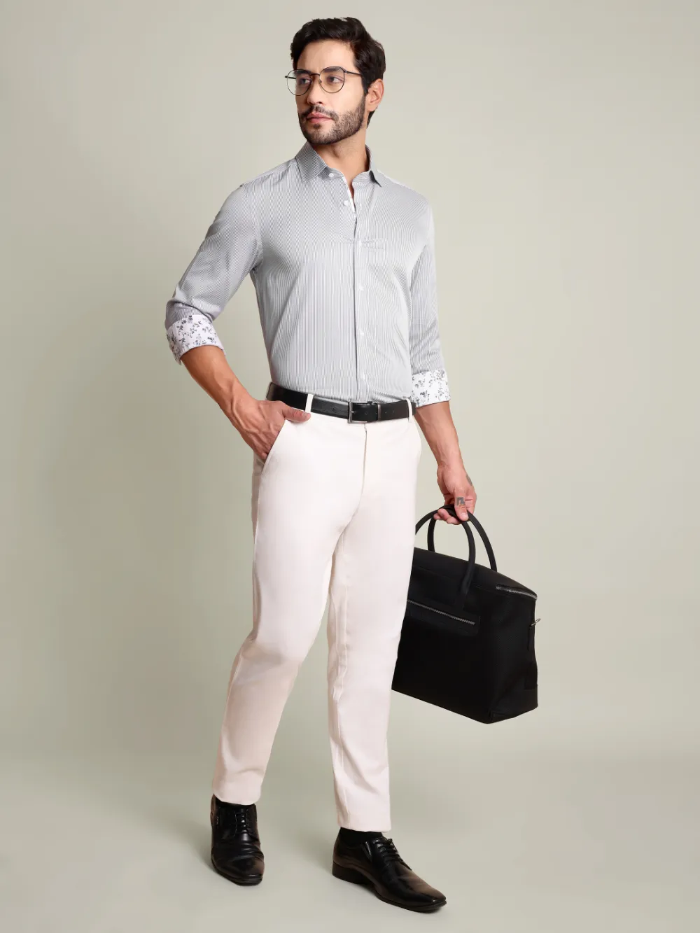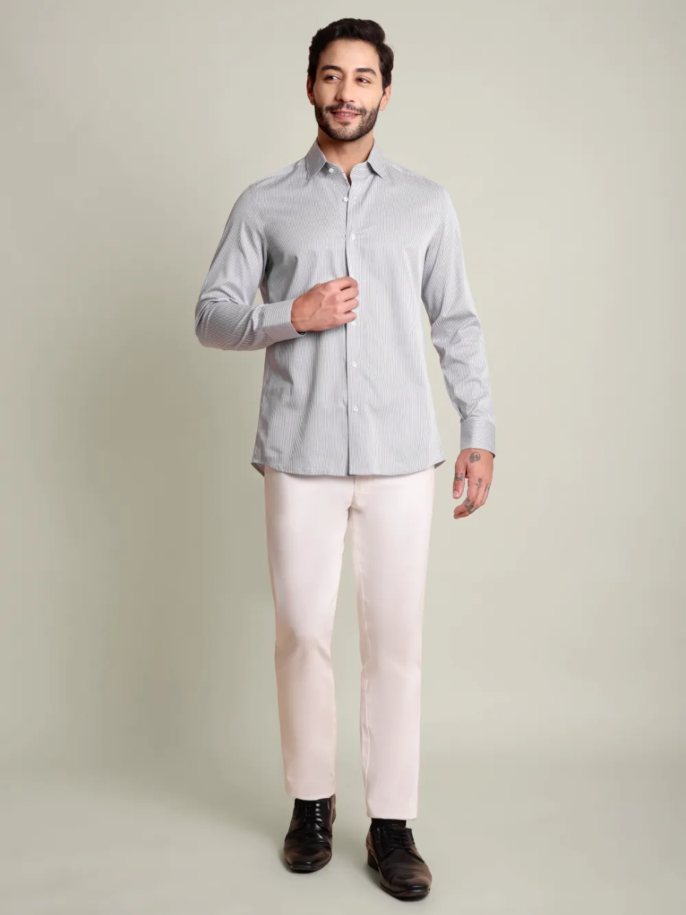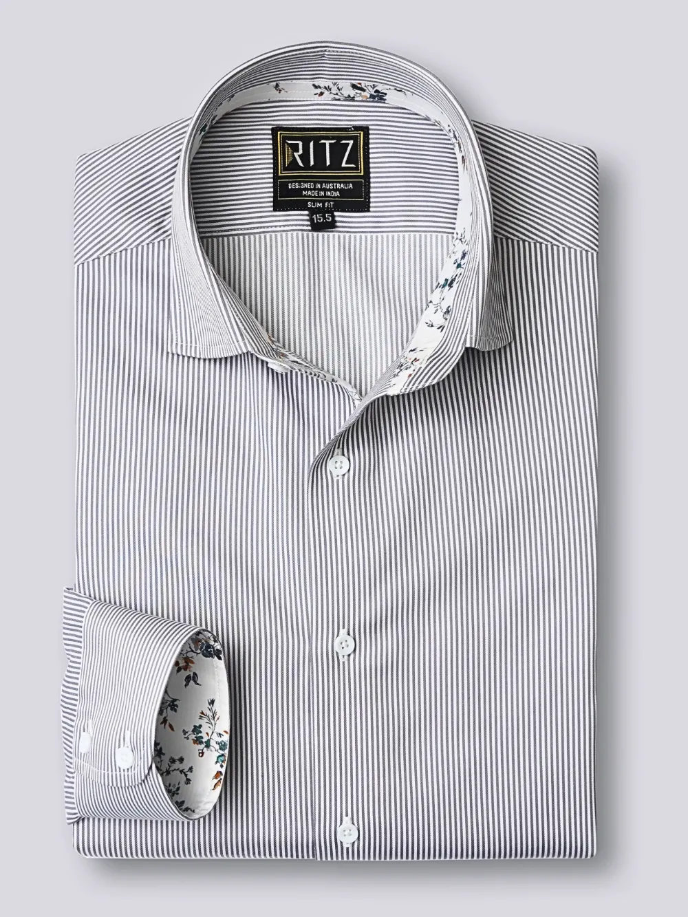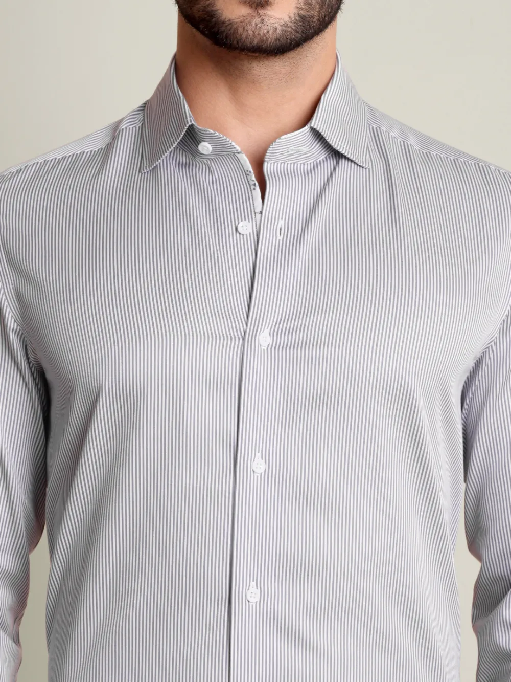 Non-Iron Pure Cotton Grey Stripped Shirt – Jacquard Weave
