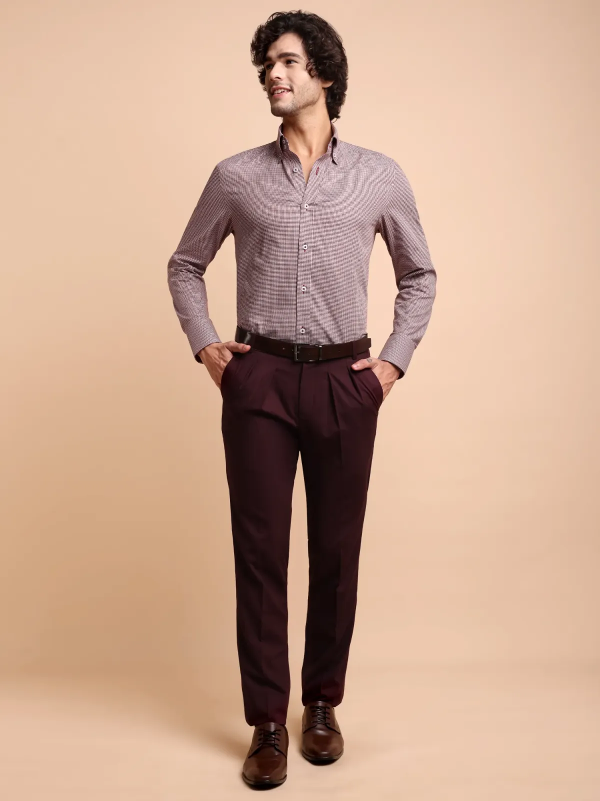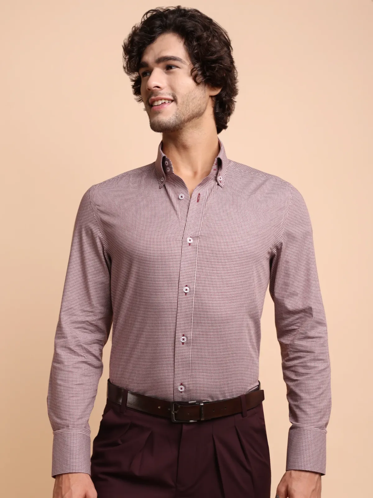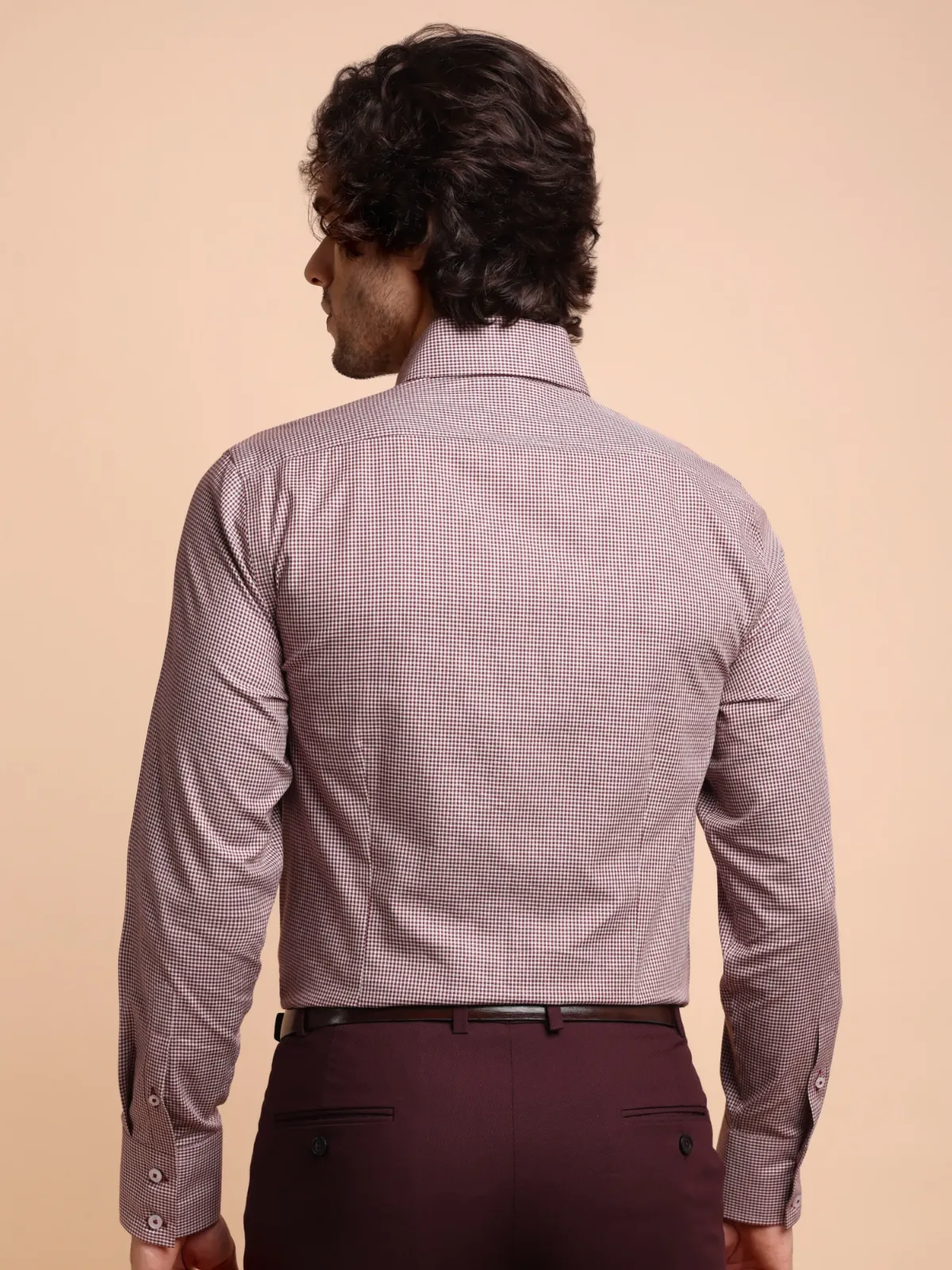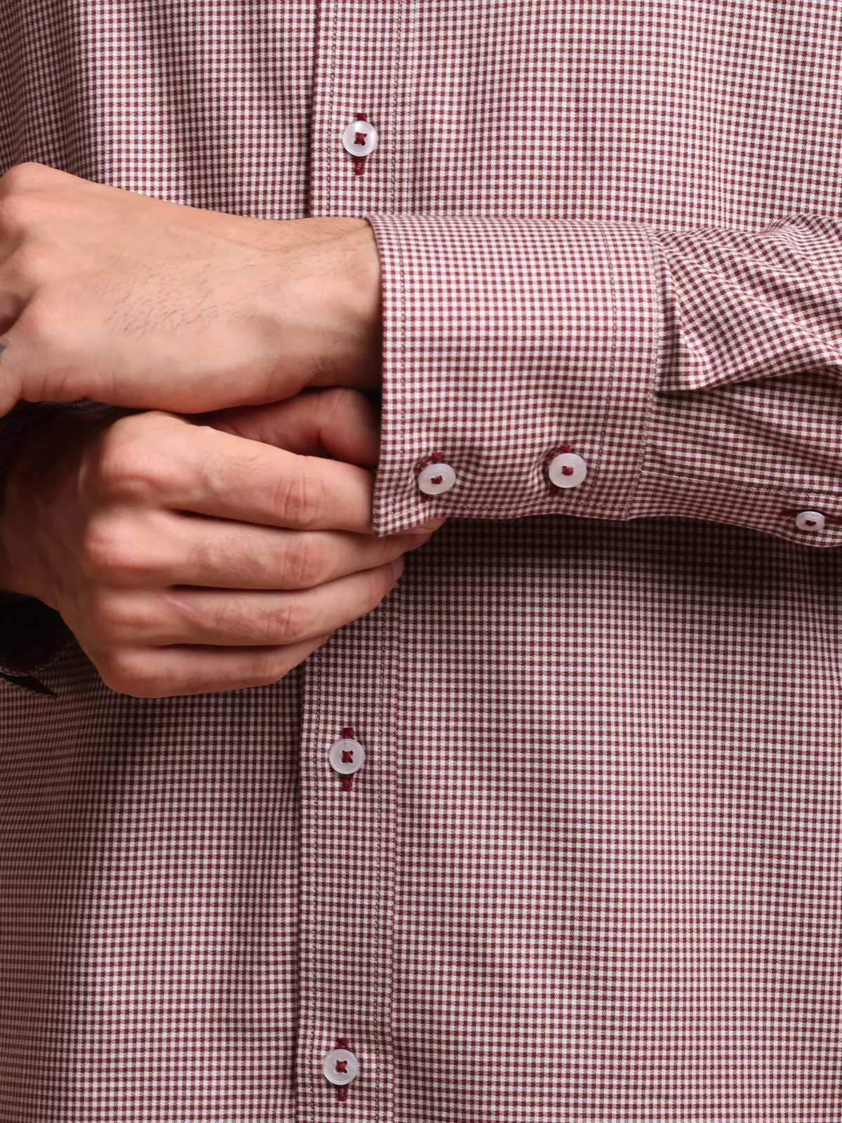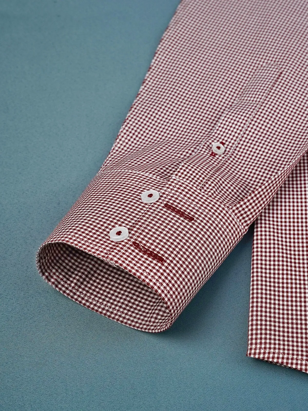 Non Iron Cotton Maroon Hound’s Tooth Shirt – Twill weave