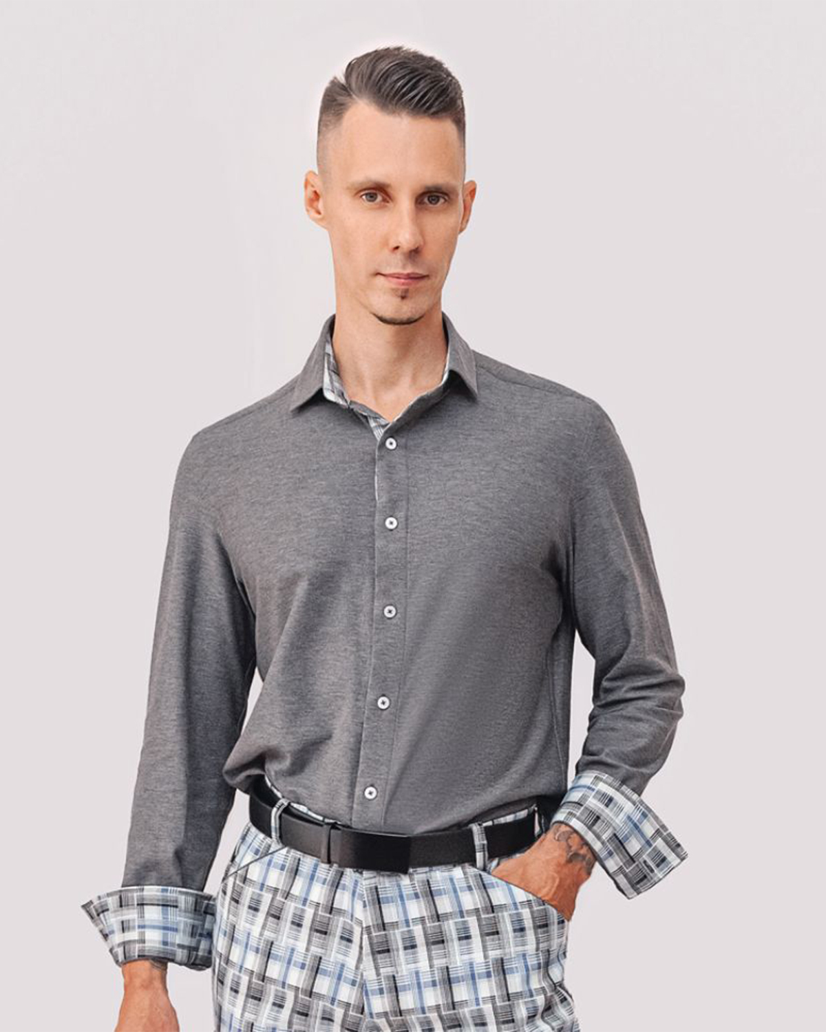 Whether you’re attending a business meeting, enjoying a casual brunch, or heading out for a night on the town, this Gray Solid Color 100% Cotton Stretch Shirt is the epitome of timeless style and versatility. Embrace the seamless fusion of comfort and sophistication, knowing that this shirt is a true reflection of our dedication to providing the modern individual with effortlessly elegant and refined attire.
