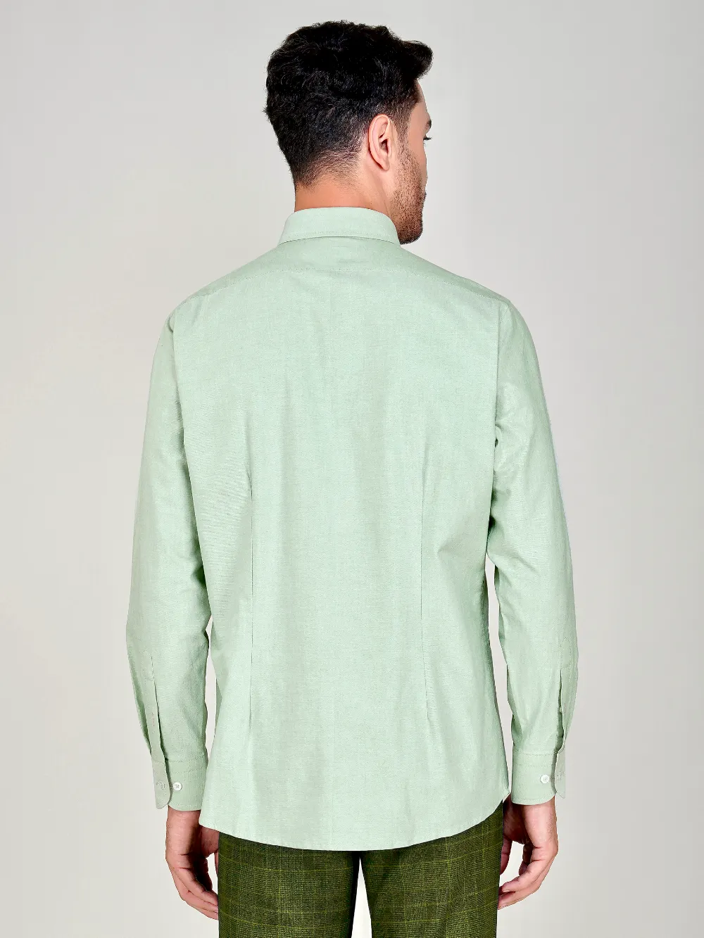 Wrap the measuring tape around the base of your neck where the shirt collar would sit. Place a finger between the tape and your neck for the easement required for comfort.