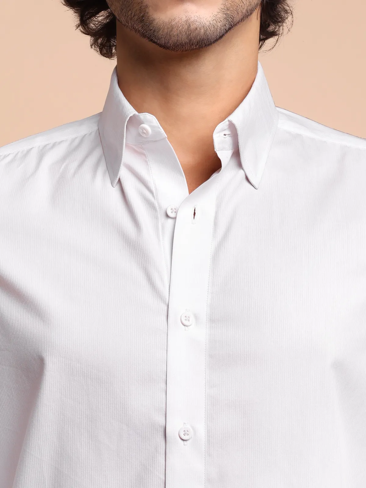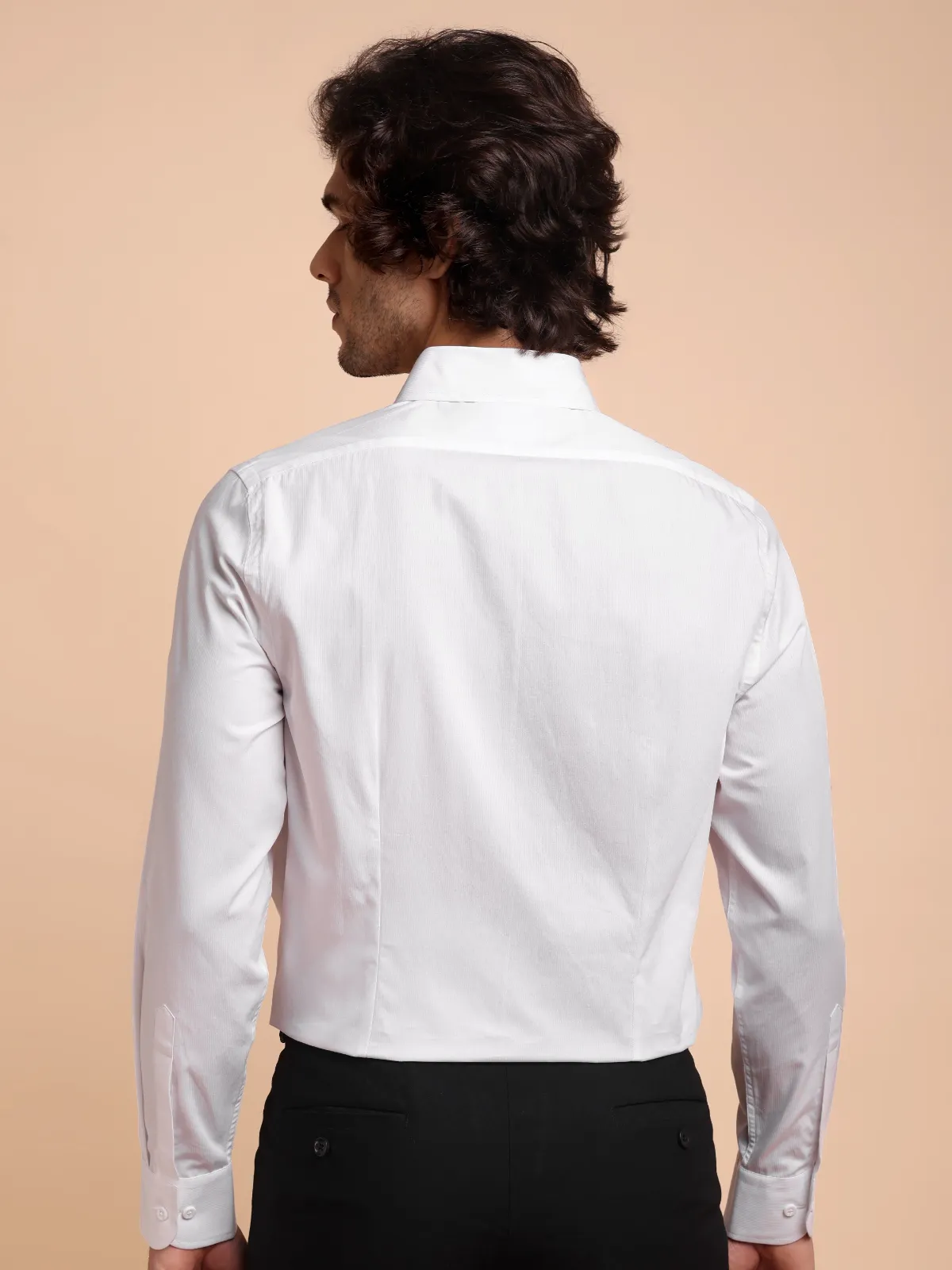 Premium Pure Cotton White Dress Shirt with self pinstripes.