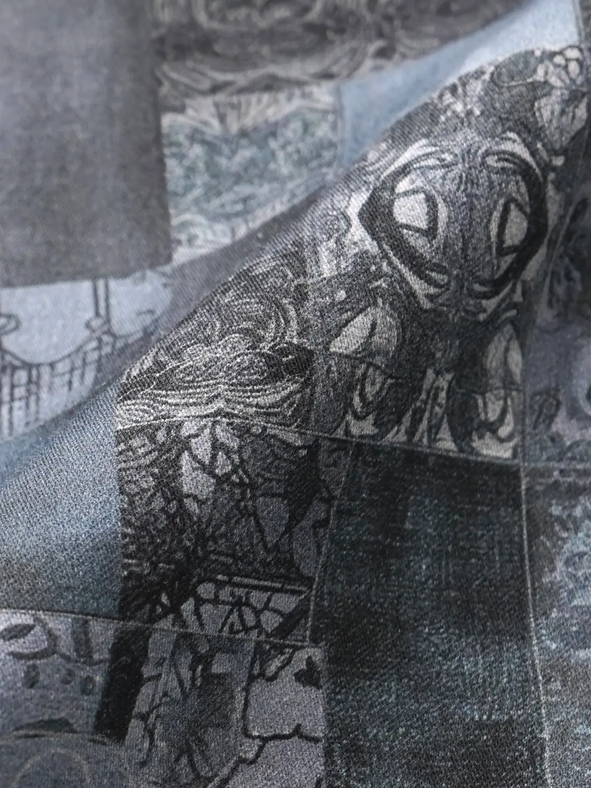 Pure Cotton Abstract Patches Shirt with Contrast Purple