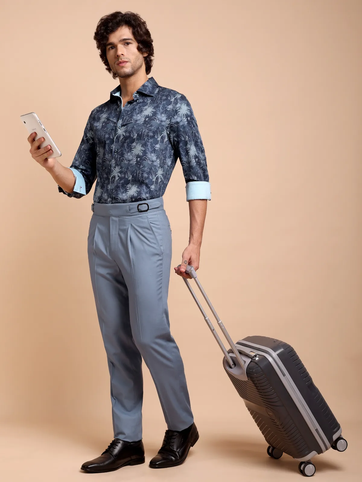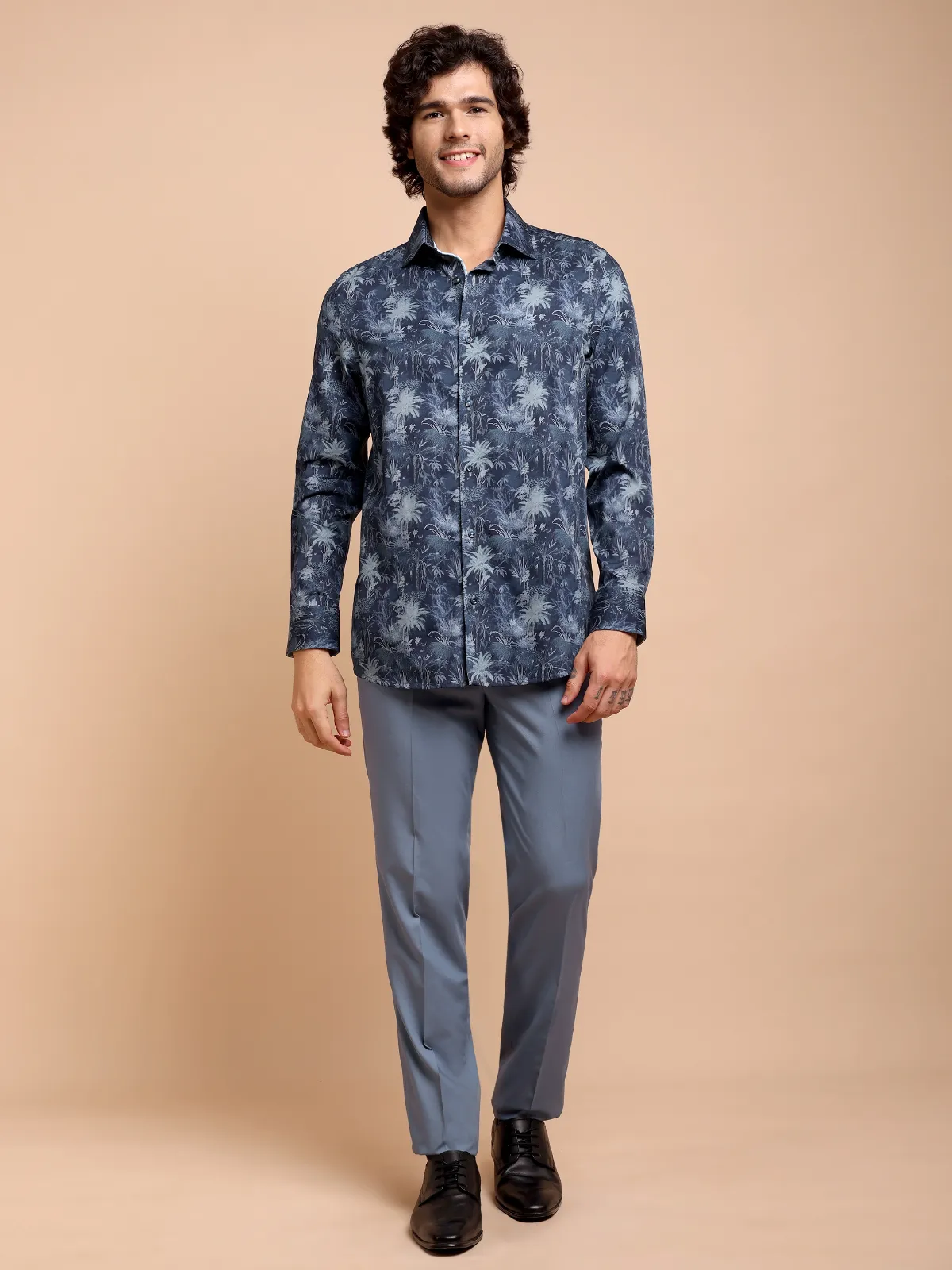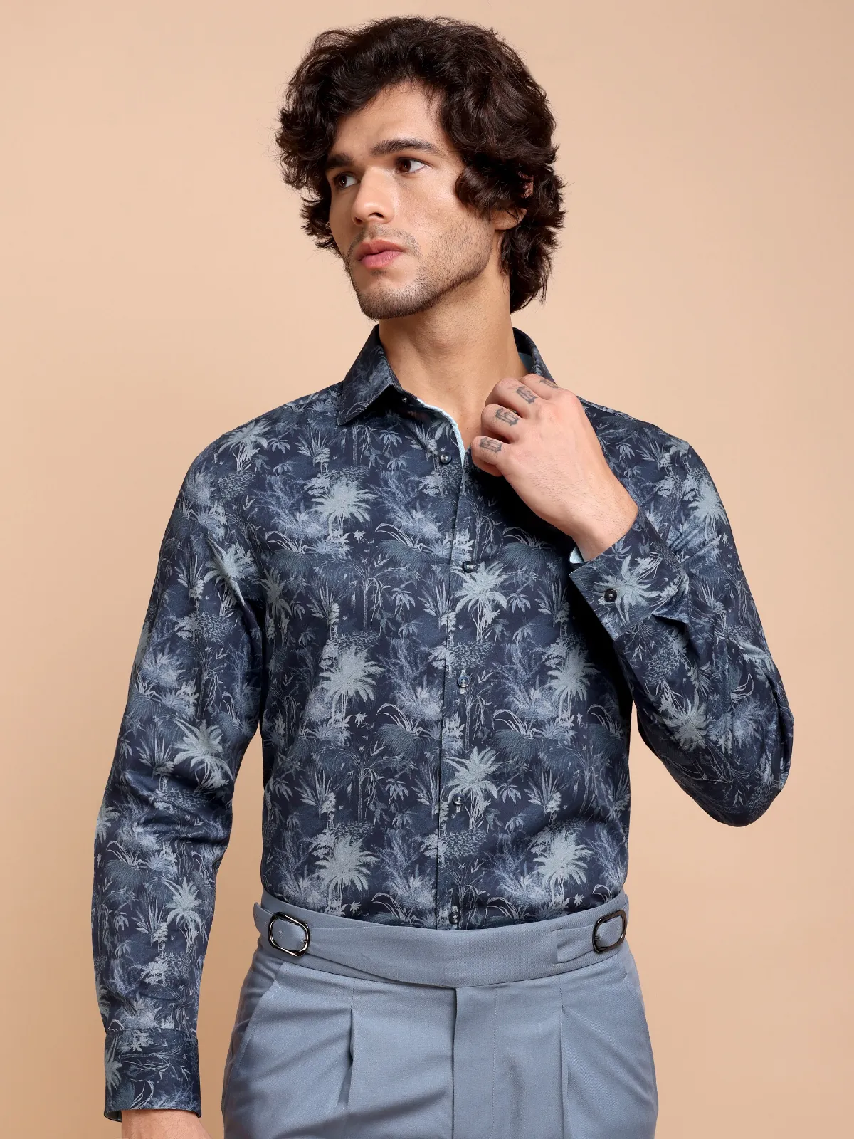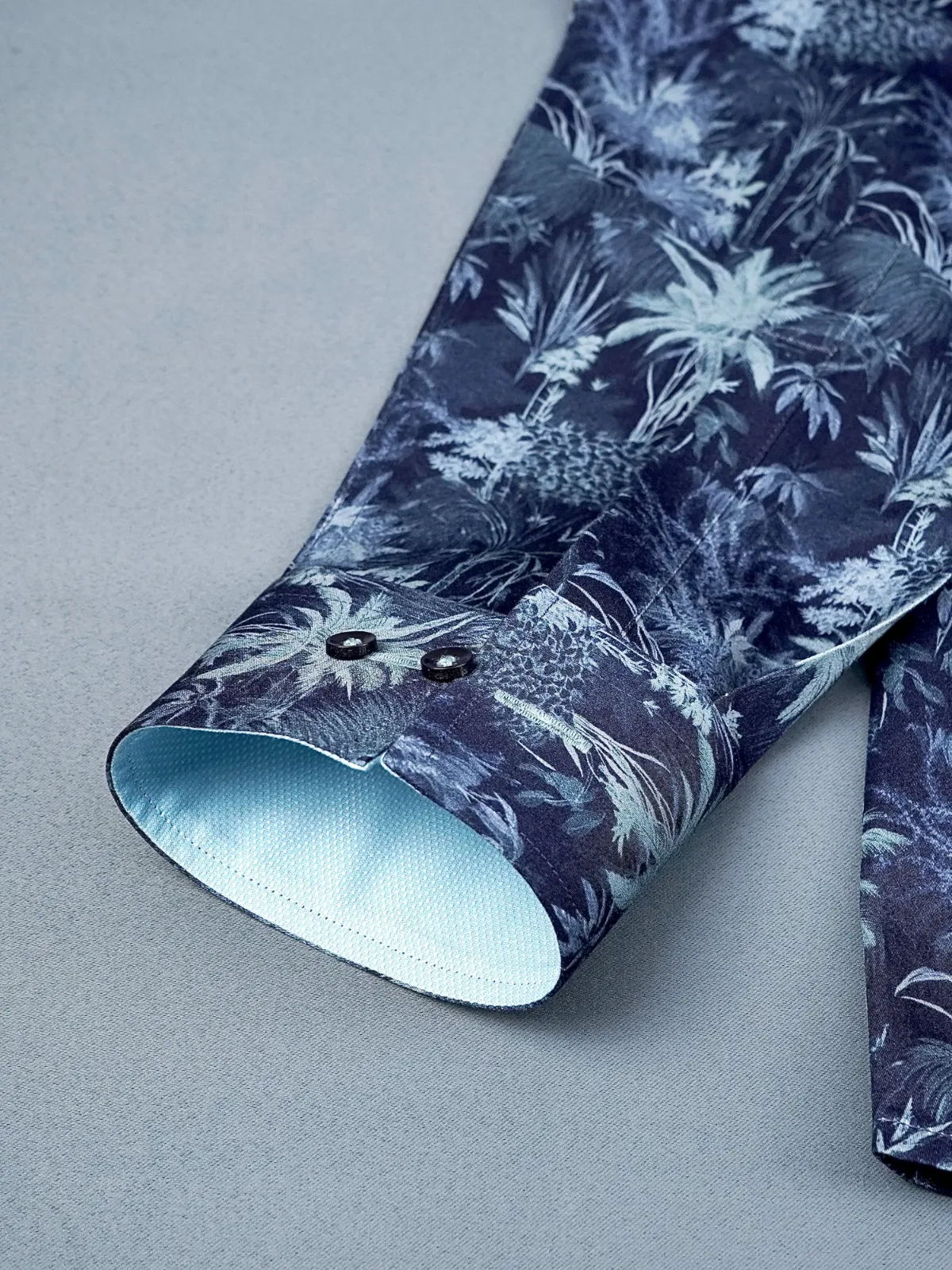 Our abstract print – mimicking night forest with indigo and sky colour shirt is most suitable for a workwear upgrade or weekend outings. Embellished with contrast details, this shirt is a true designer masterpiece.