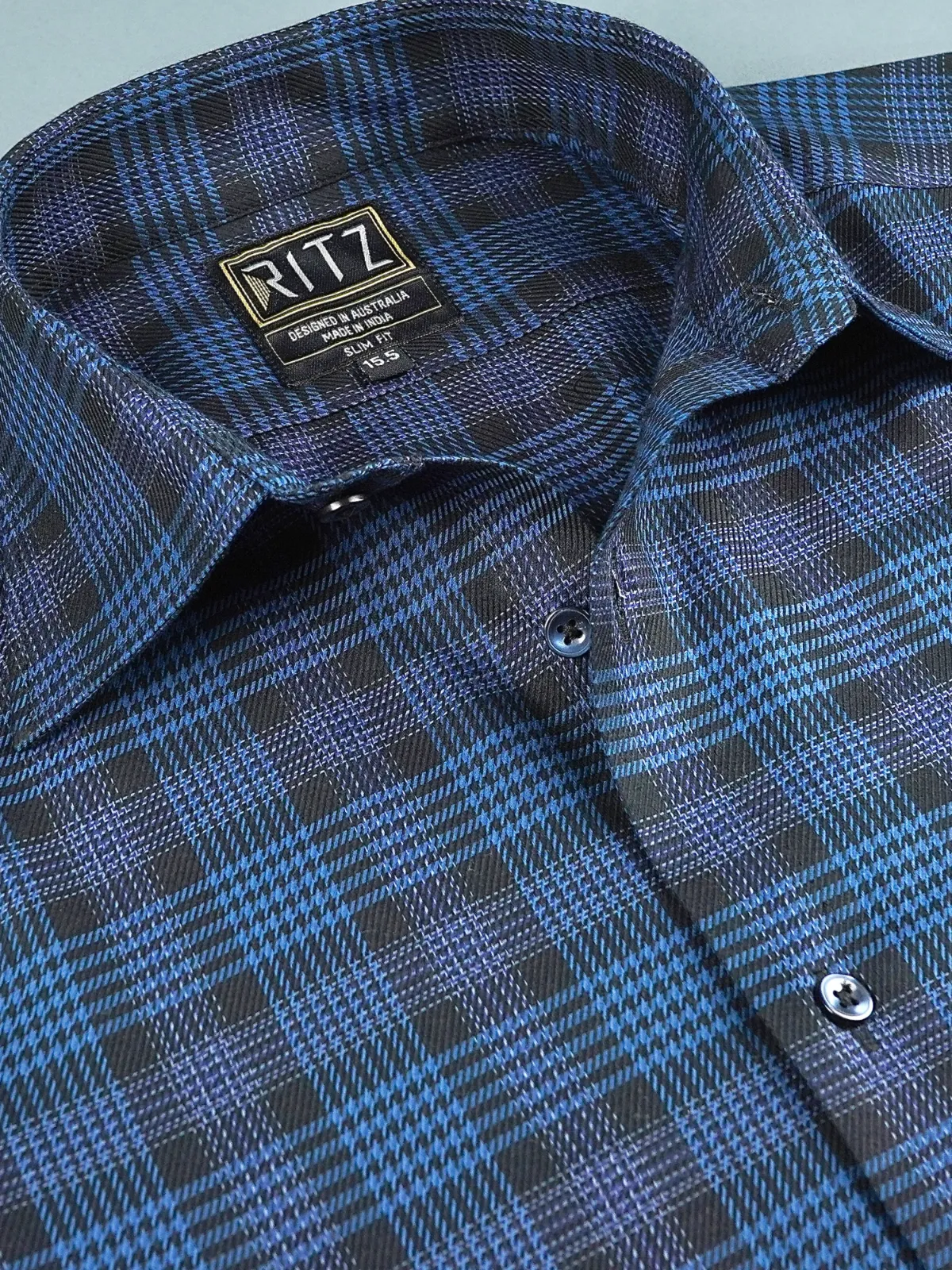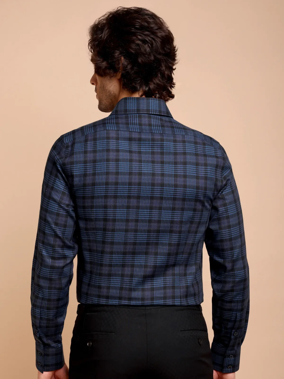 This shirt consists of black and royal blue grid woven with a classic twill weave that showcases a unique take of a well appreciated hound’s tooth pattern across the world. The slightly wider collar points create a more contemporary look, while the combination of classic colours keeps the elegant statement intact.