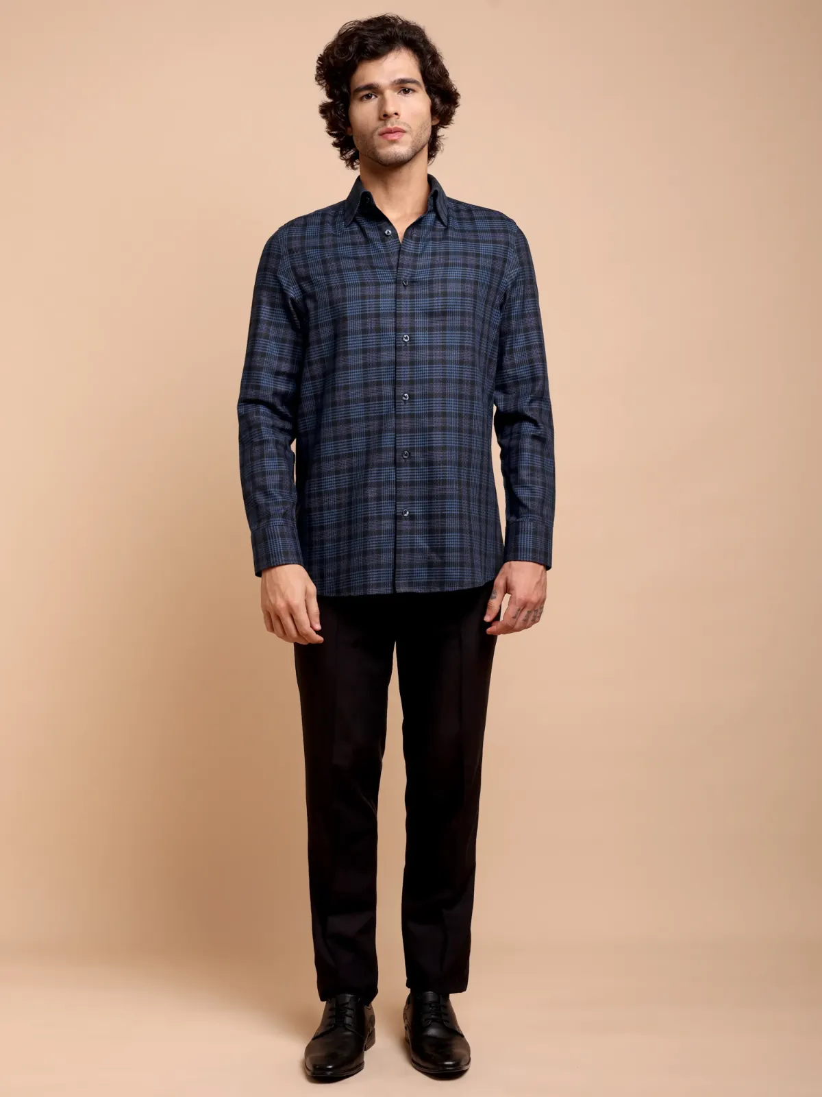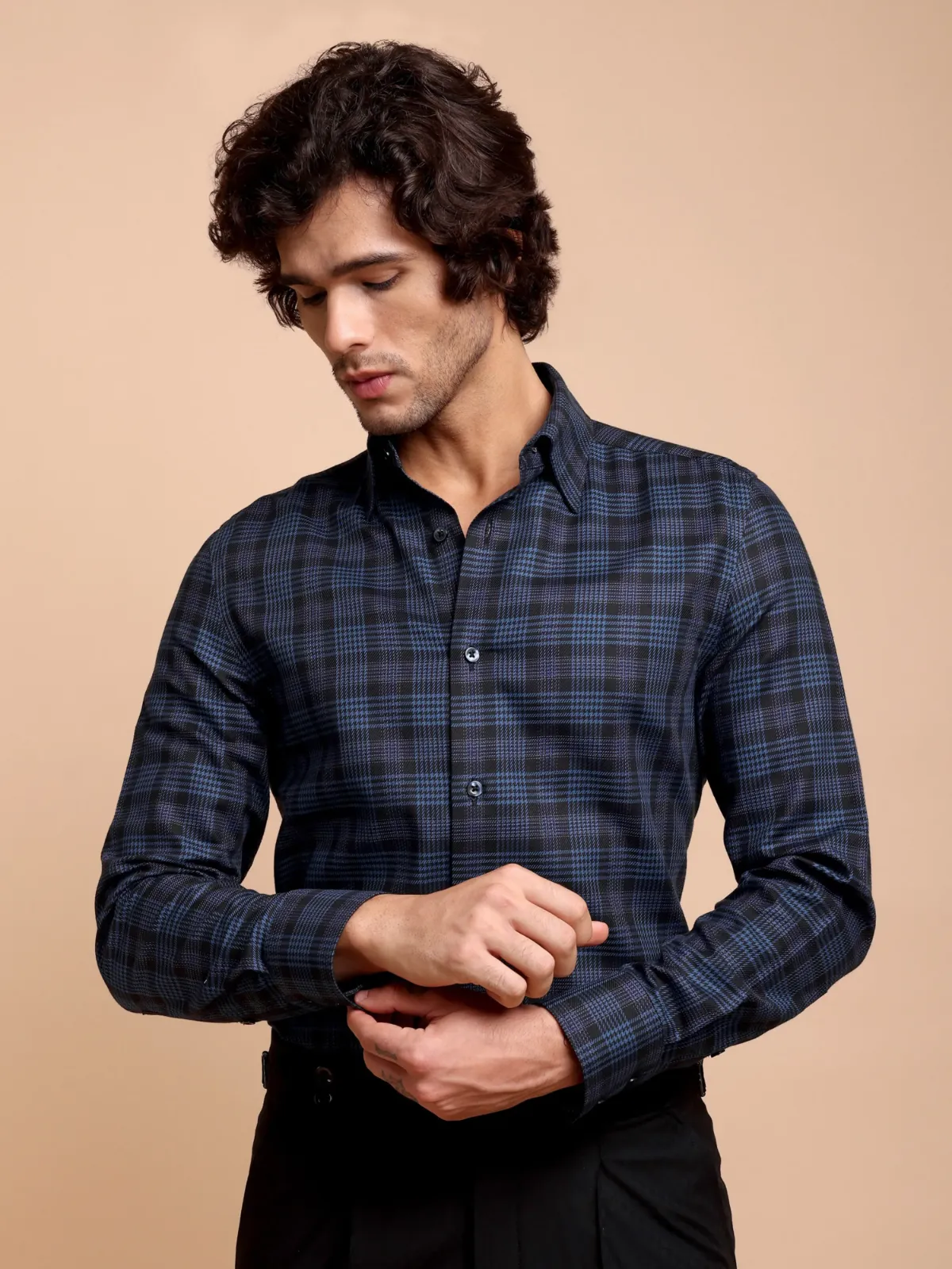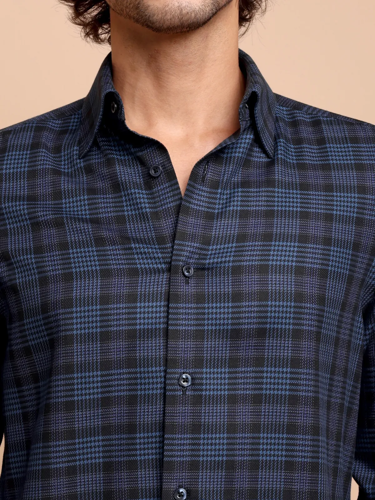 This elegant piece of craftsmanship showcases a well appreciated hound?s tooth checked pattern but in a unique way. The twill weave yarn dyed fabric is crafted using only premium 100% cotton yarns, making it an essential wardrobe addition for business meetings or casual outings.