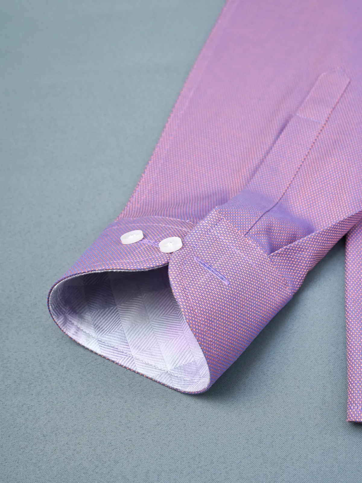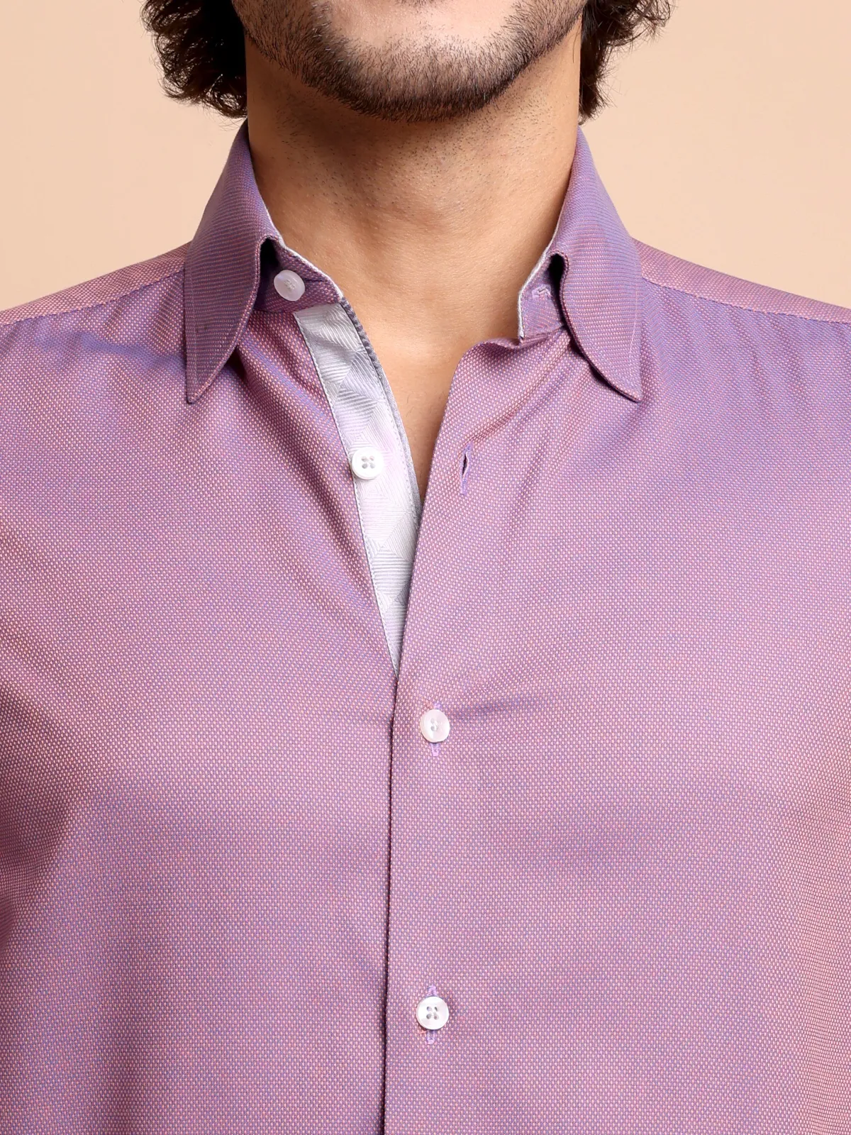 This pure cotton Mulberry shirt, showcasing subtle Dobby Weave, is a true example of uniqueness with classic style. Uniquely crafted collar, cuffs and button placket using contrast checked fabric, complementing the base fabric colour, redefines the conventional elegance.
