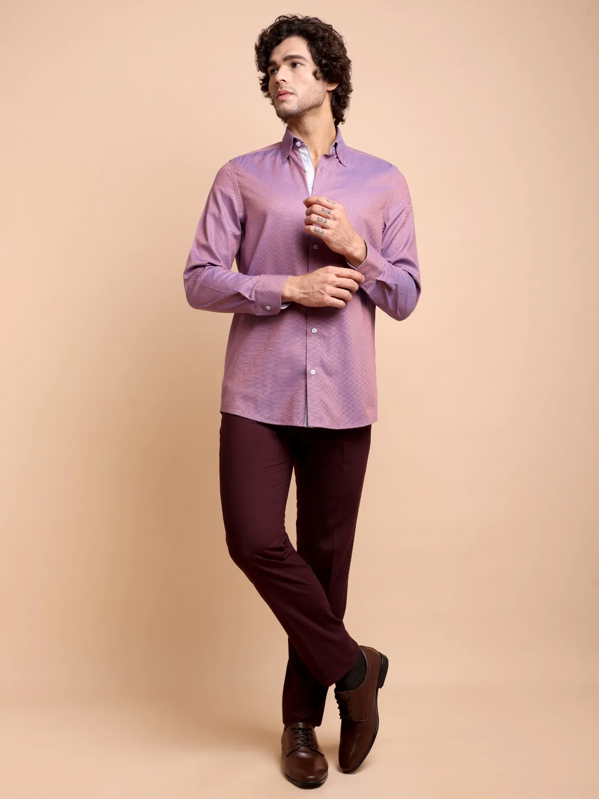 Presenting this unique masterpiece that is a statement in itself. Crafted from our premium pure cotton non-iron fabric, the apparel features a subtle dobby weave that offers depth and durability. The unique checked print, inside band, cuffs and button placket adds a subtle characteristic, bringing refined character of the overall design. The buttons, button thread and the button holes are crafted with the contrast colours to complement the rest of the Apparel.