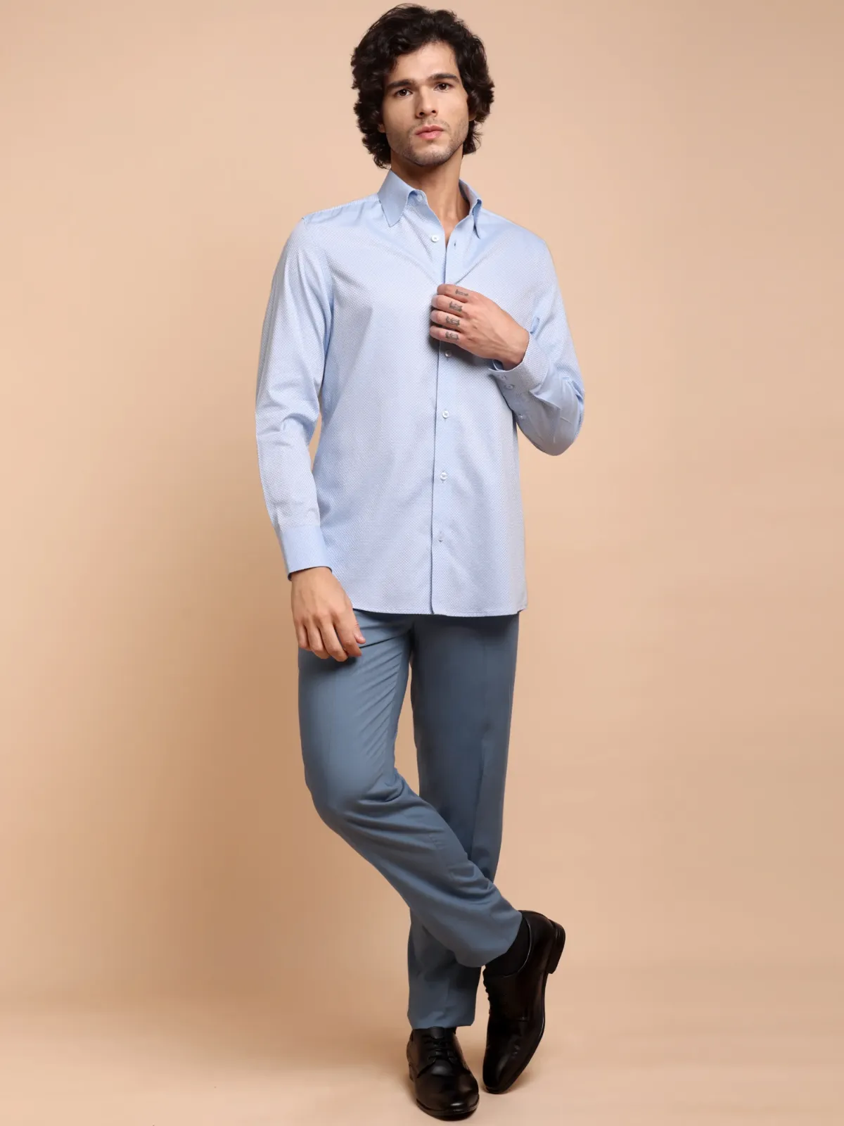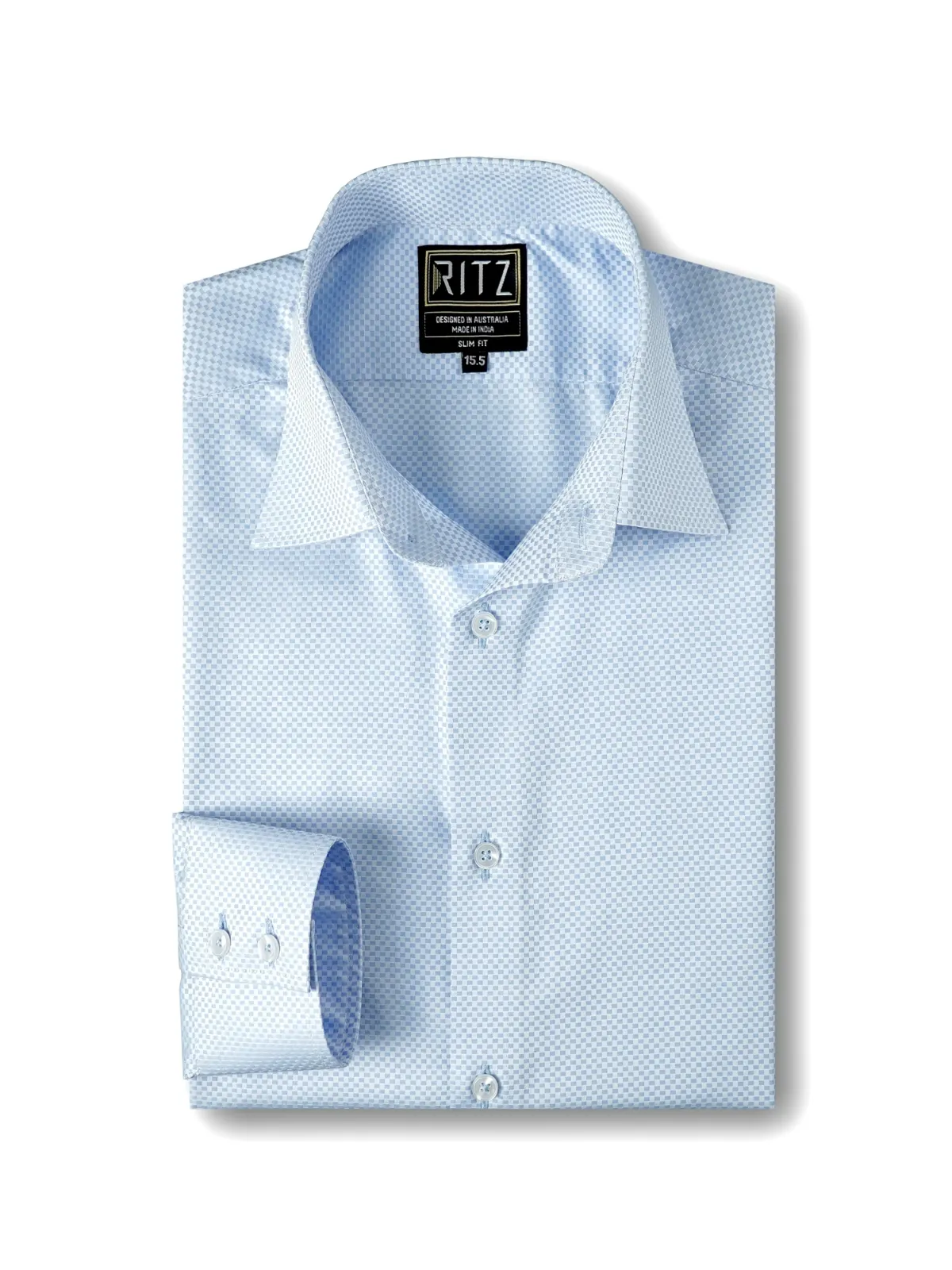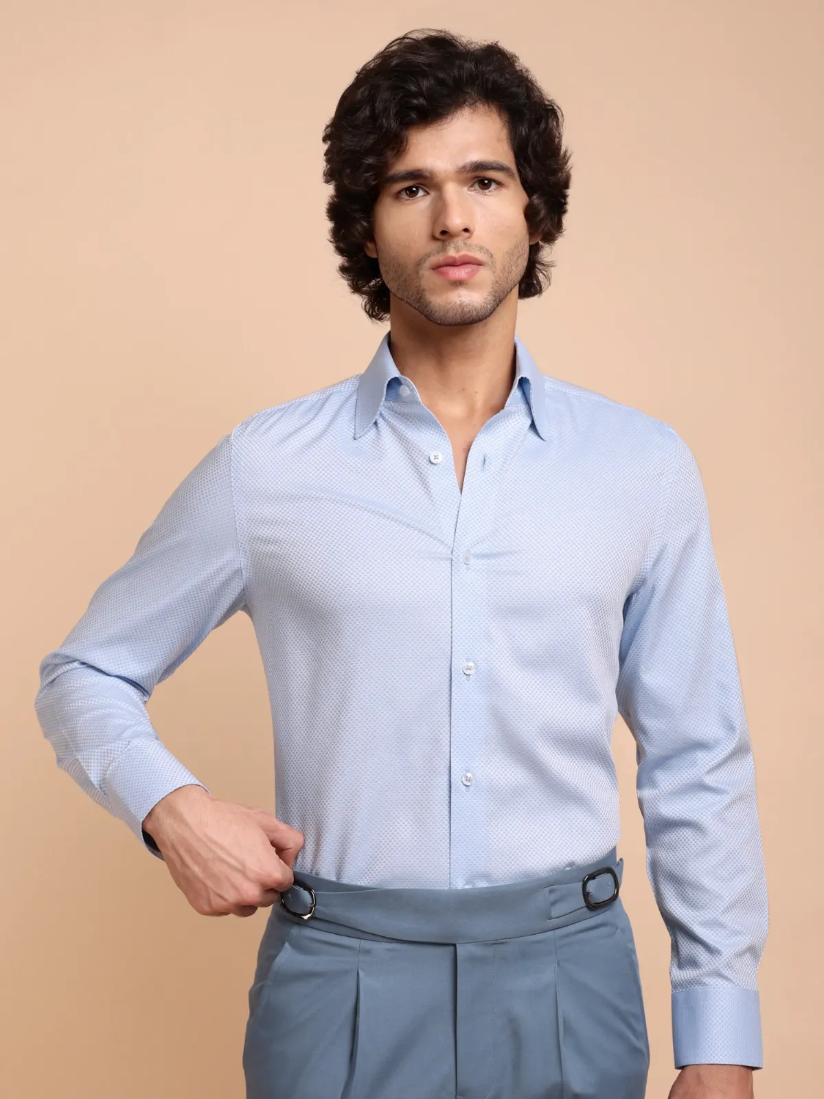 Pure Cotton Non Iron Sky Checkerboard Shirt – Dobby weave