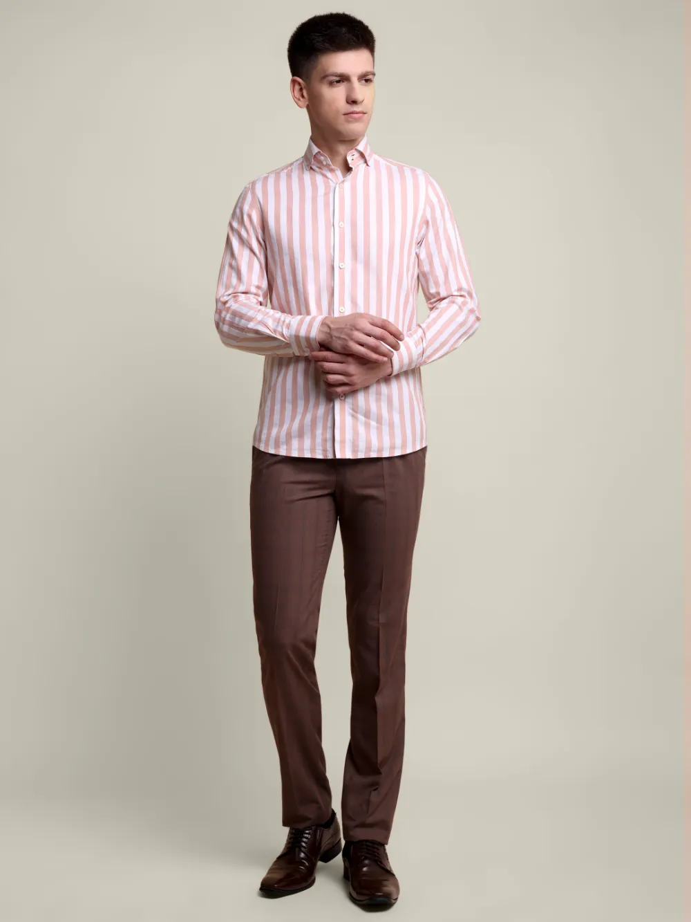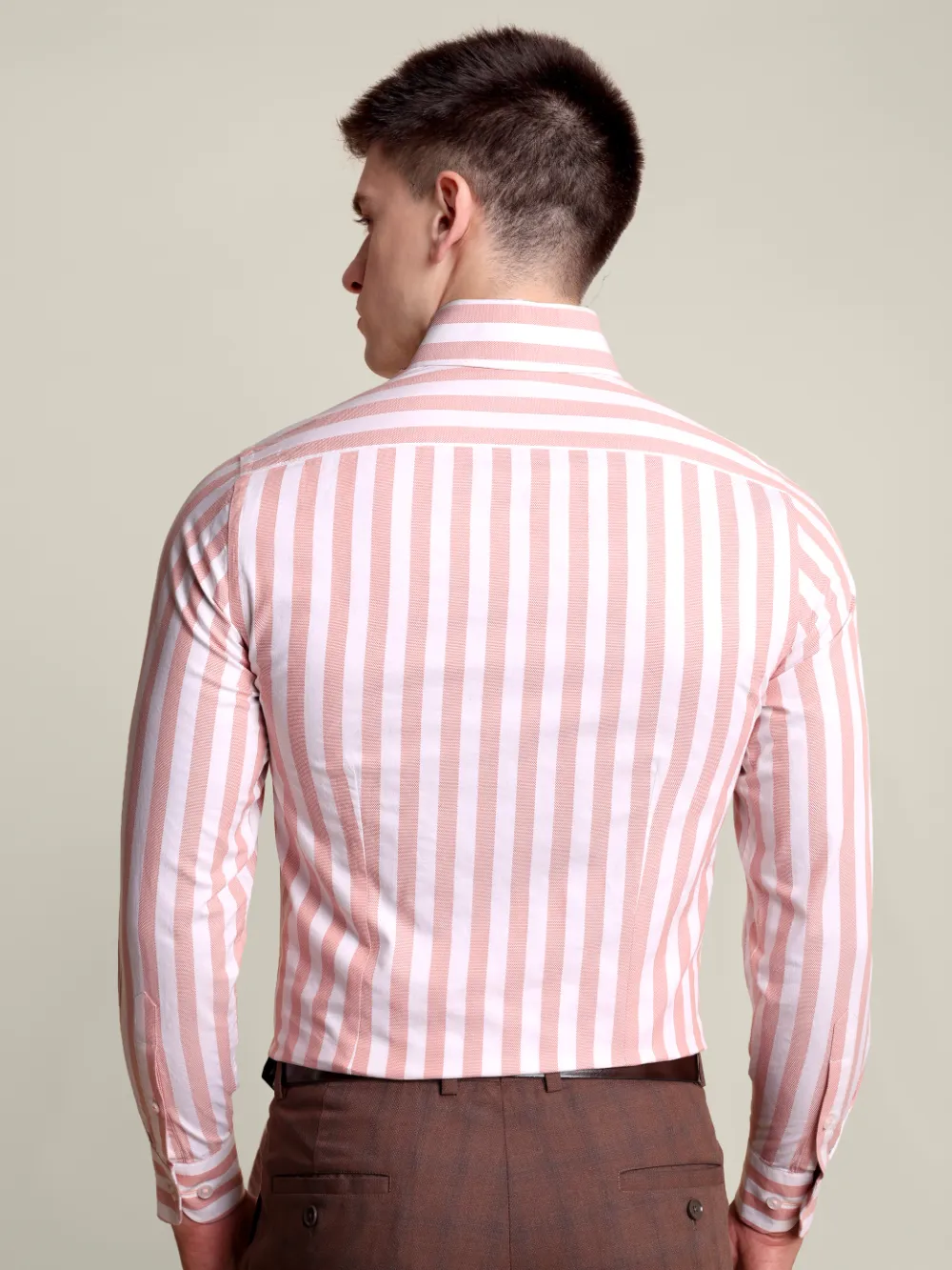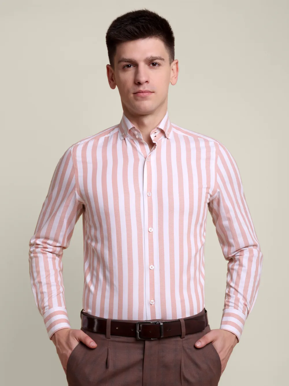 Experience the perfect blend of luxury and craftsmanship with our premium bold stripped shirt, meticulously crafted for timeless style. Made from the finest cotton, this shirt features a unique blend of twill weave and dobby weave that ensures a soft feel and long-lasting quality. The yarn-dyed fabric adds a rich depth of colour, while the broad band with two buttons and cut away button-down collar offers a refined, structured look. Every detail, from the hand-finished seams to the expertly tailored fit, speaks to the dedication of skilled artisans.