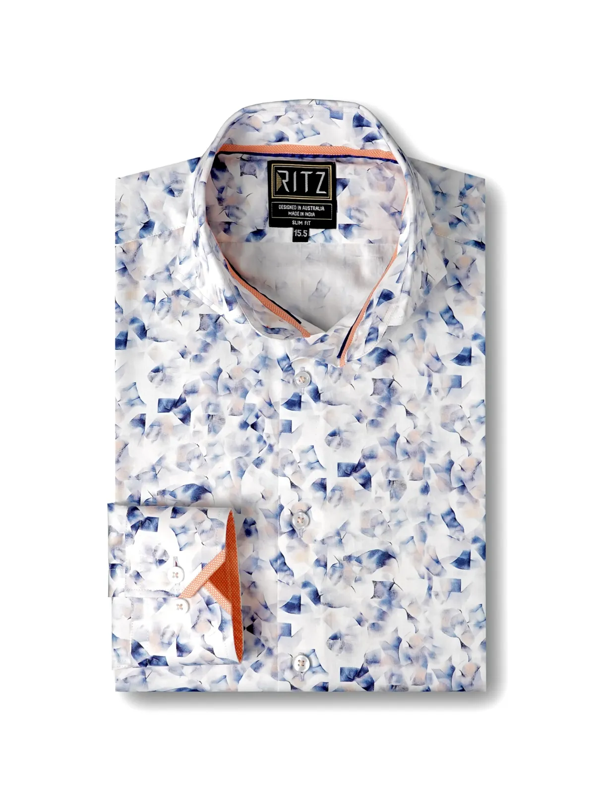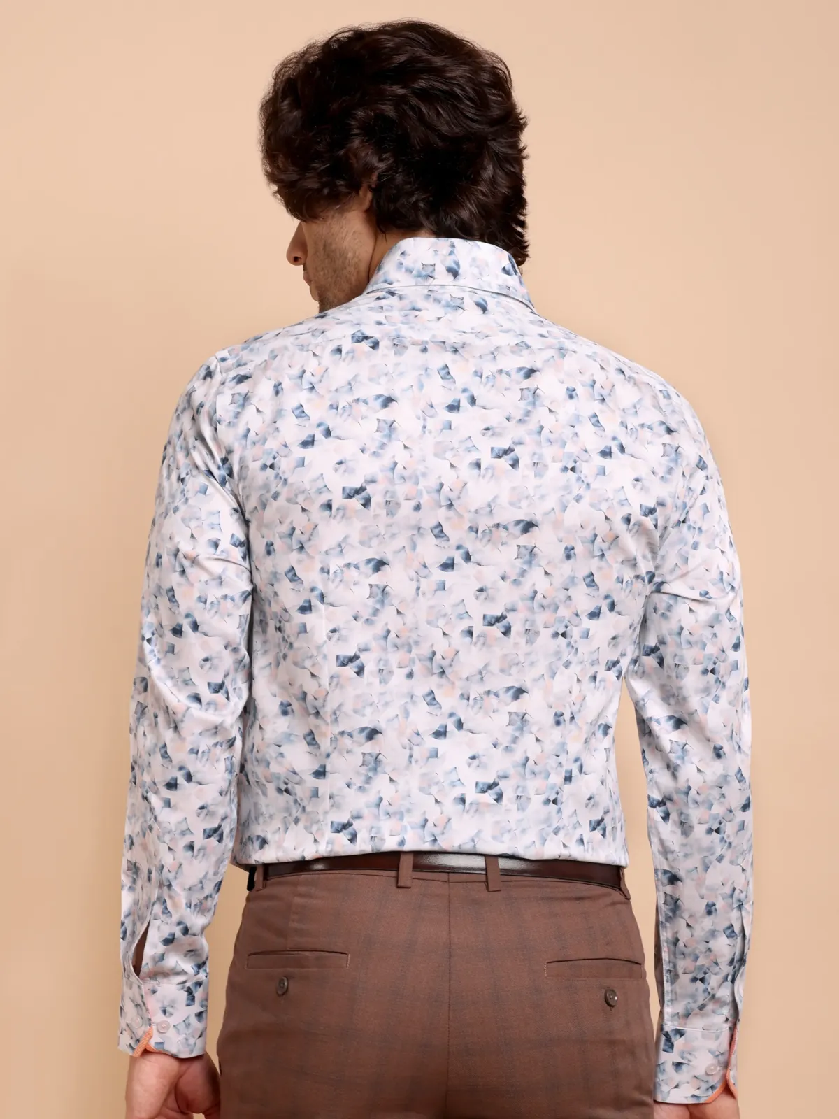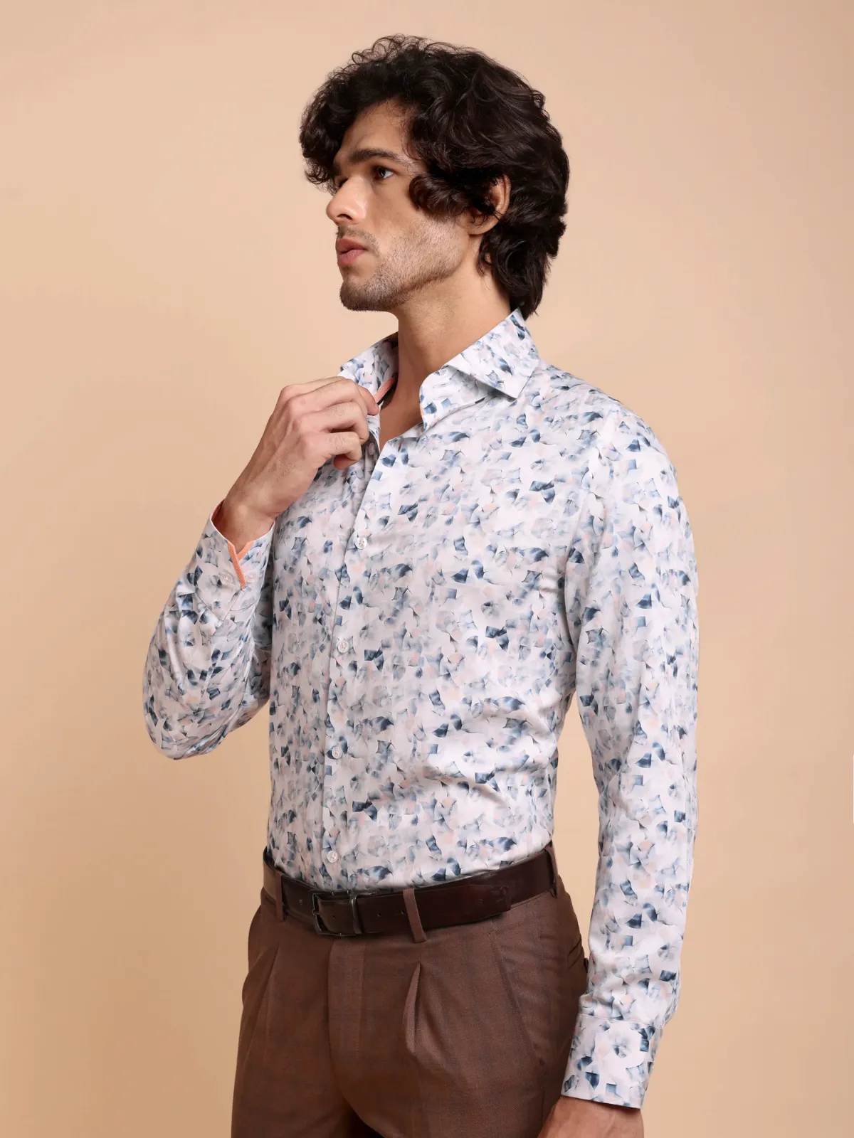 Our Picasso?s Blue in White Abstract print shirt is designed using contrast fabric for the inner band, cuffs and button placket accent that complements the colours used for the base fabric pint. The high two button cutaway collar provides a bold look, making this fine piece of artistic creation suitable for work or leisure.