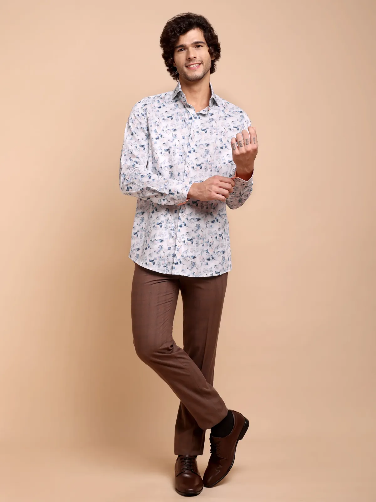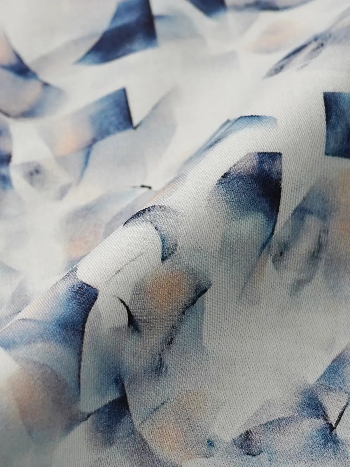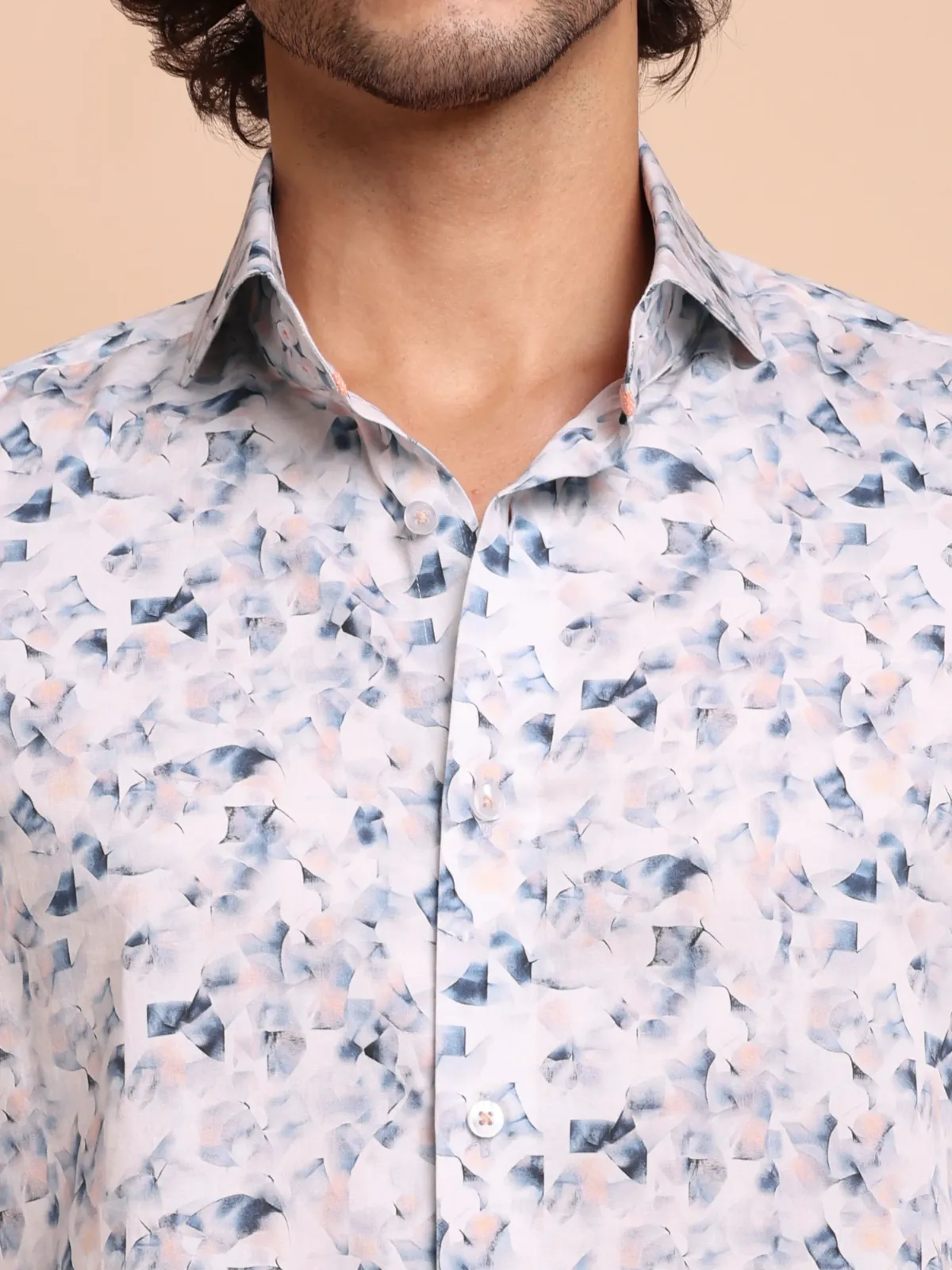 Pure Cotton Picasso?s Blue in White Abstract Print Shirt
