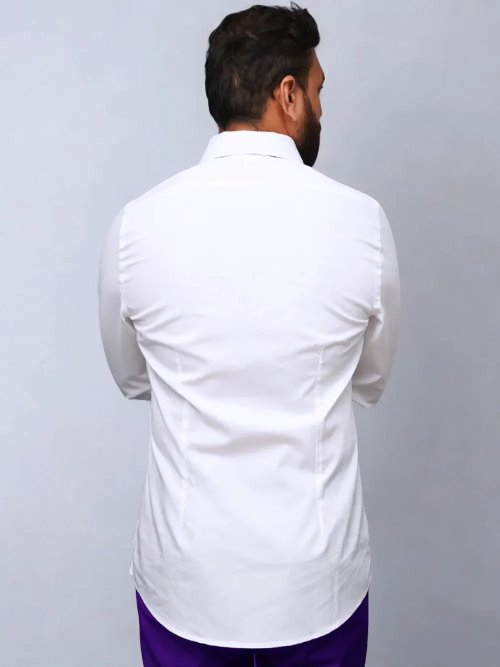 Indulge in ultimate luxury with this designer men’s white shirt, crafted from a refined self-pin-striped cotton enhanced with Japanese crepe satin. This unique fusion of fabrics brings together a touch of sophistication and an elegant drape. Subtle yet distinctive color accents elevate its timeless appeal, making it a statement piece for any discerning wardrobe.
