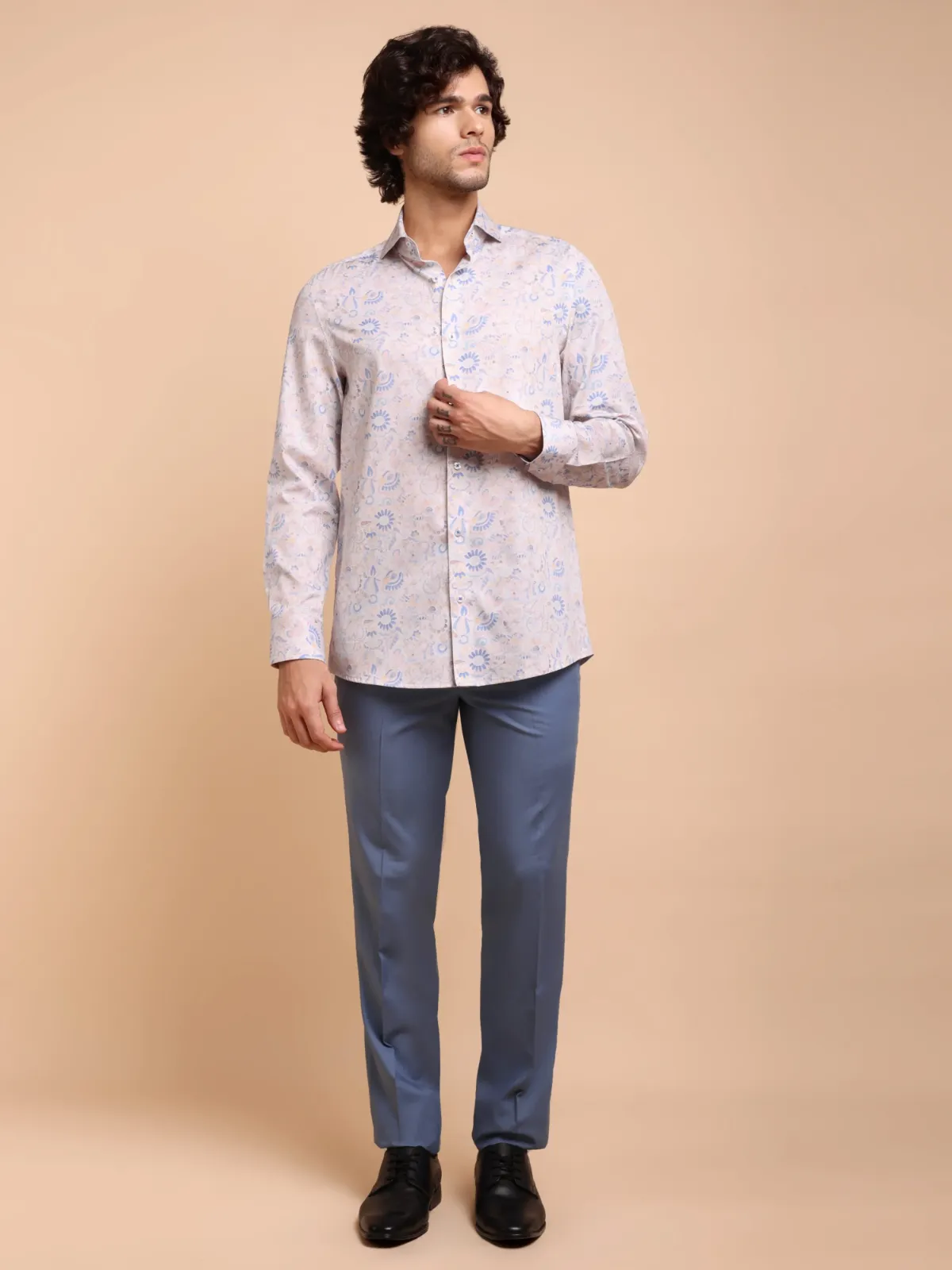 Elevate your casual wardrobe with this effortlessly elegant shirt, crafted from premium fabric that balances comfort with a touch of quiet luxury. The soft pastel floral motif, inspired by watercolor artistry, lends a fresh and contemporary aesthetic that remains understated yet refined. Gentle tones of lavender, powder blue, and blush create a soothing palette that makes this piece ideal for relaxed weekend getaways, brunches, or summer soir?es.