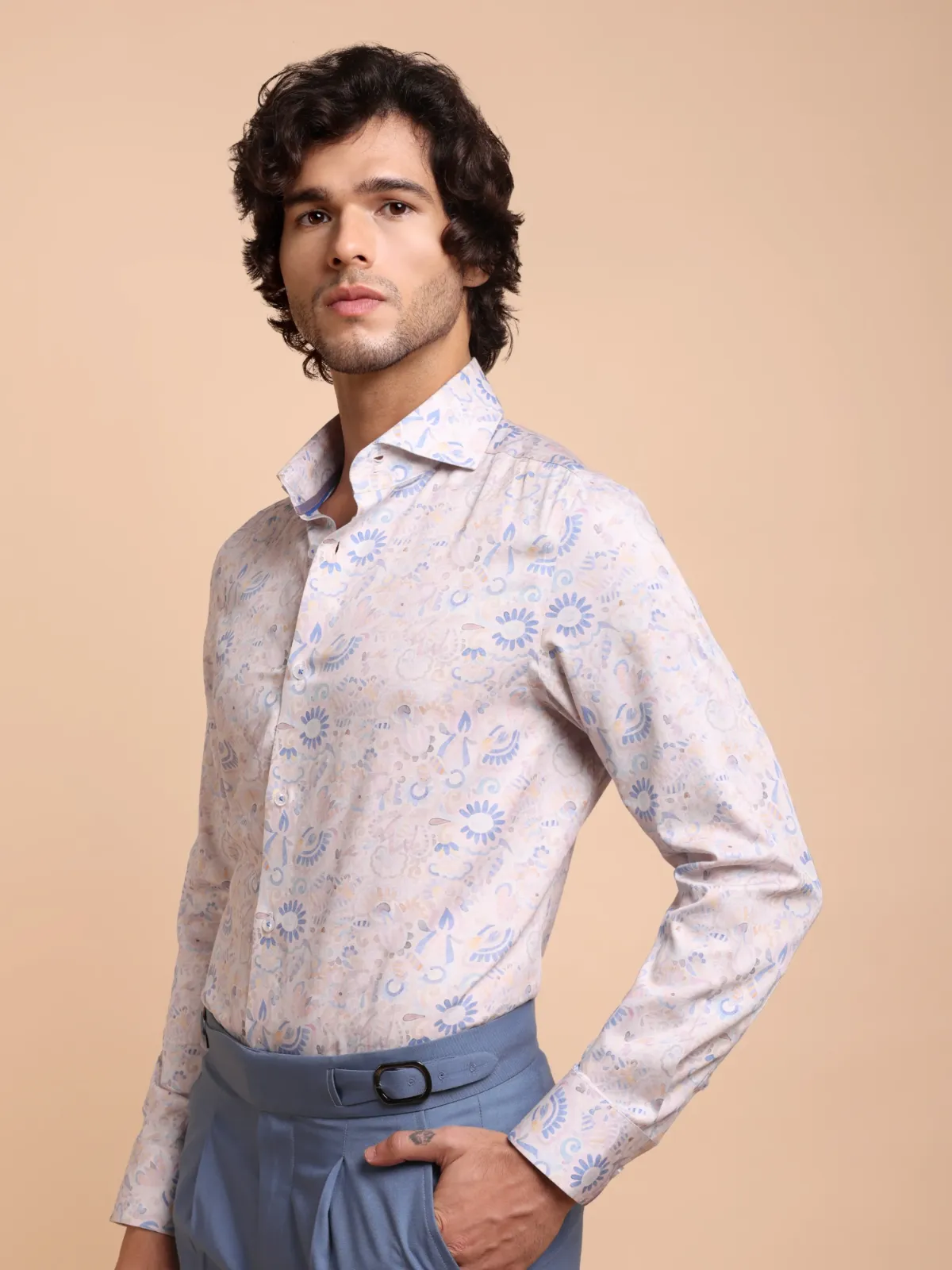 A breezy blend of comfort and quiet luxury, this shirt features a soft pastel floral print that evokes an artistic, watercolor charm. Crafted for the modern gentleman who appreciates subtle sophistication, it’s perfect for refined weekend wear or relaxed evening outings.